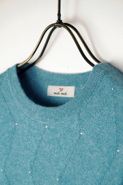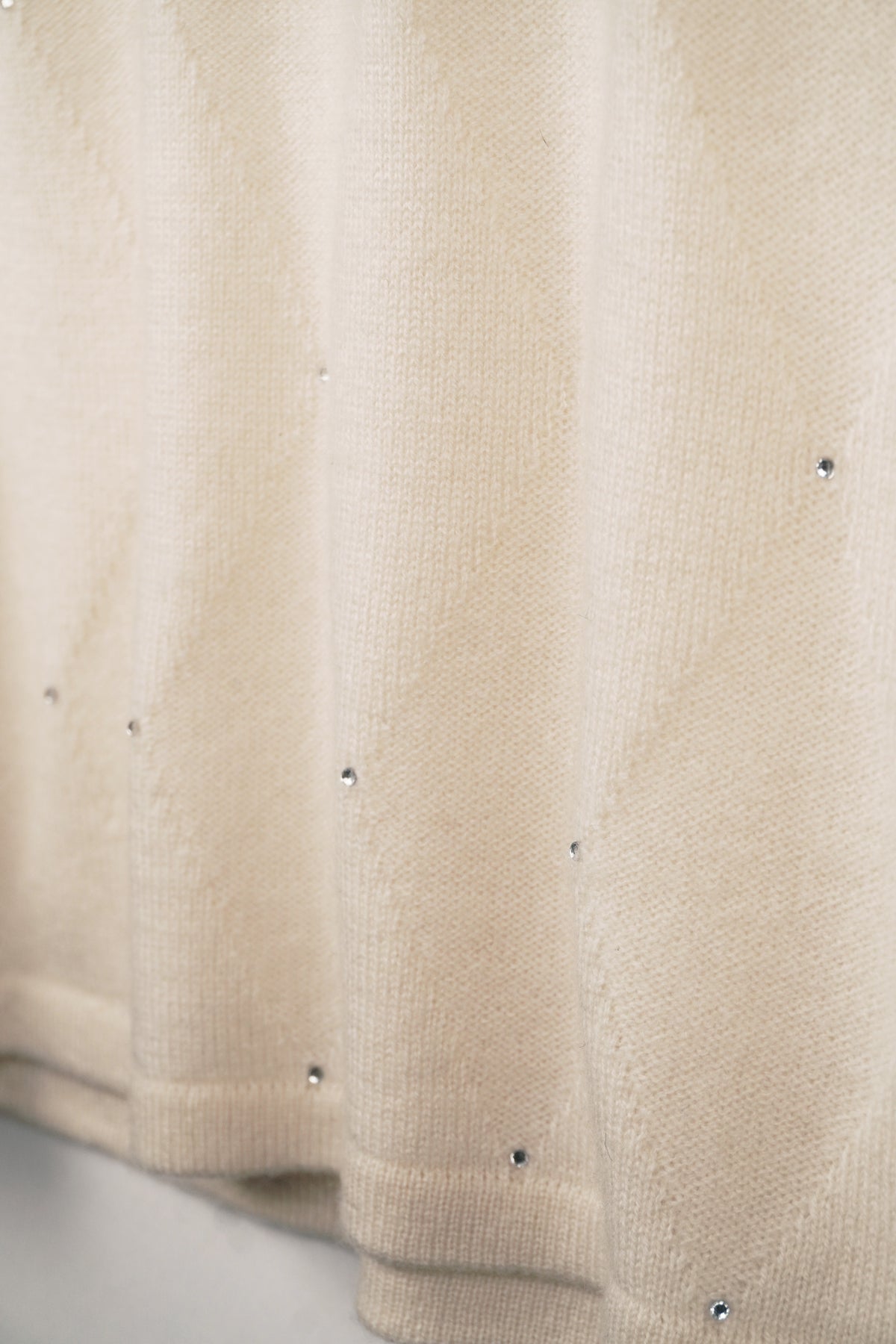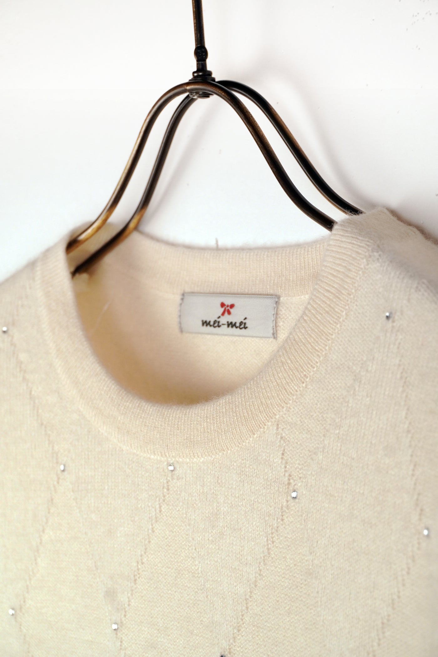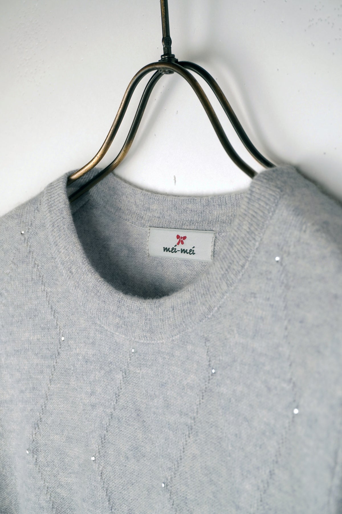 人気ラインストーンシリーズは、編地模様をダイヤ柄にし、ポイントにラインストーンを施しました。