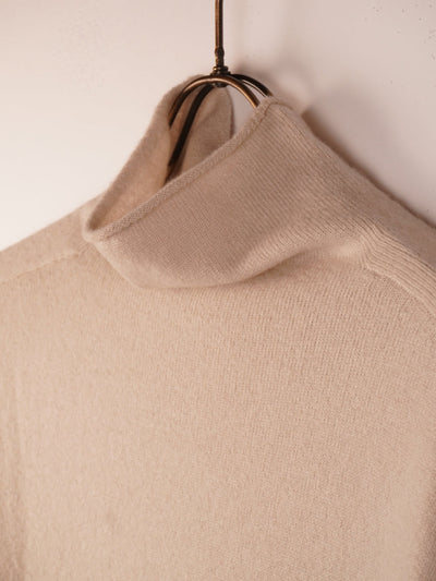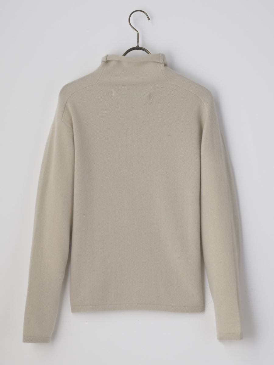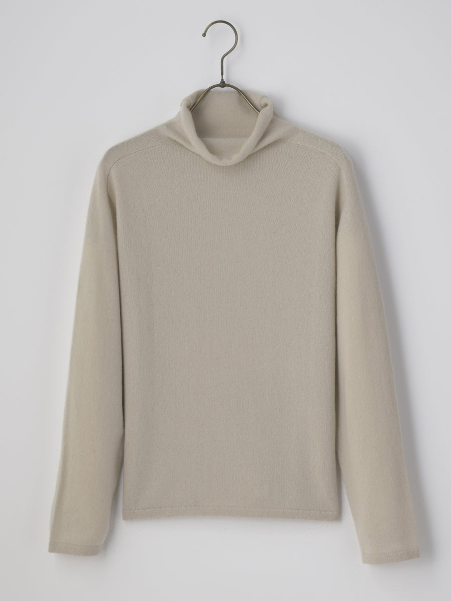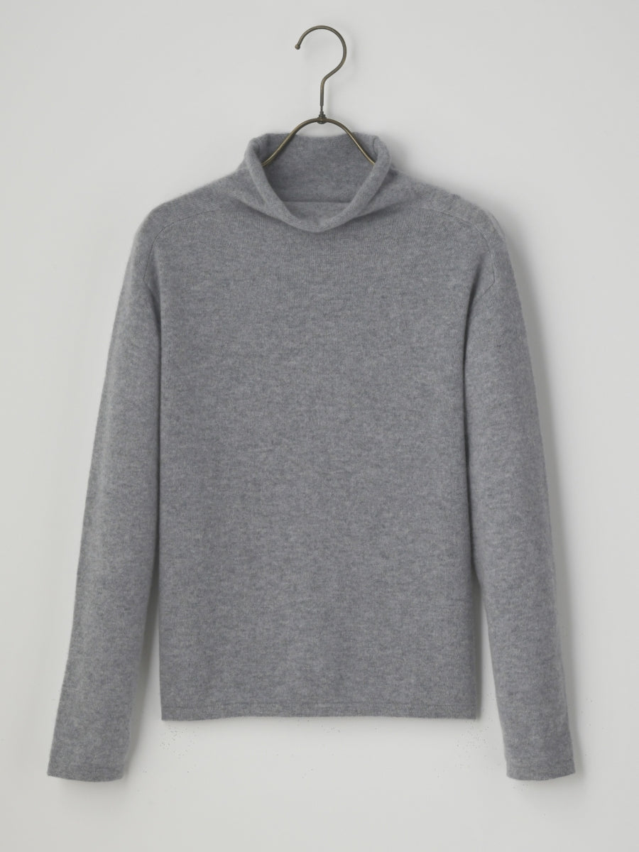 ロールネックを自由にクシュクシュとルーズに崩して楽しめるニットアイテムです。