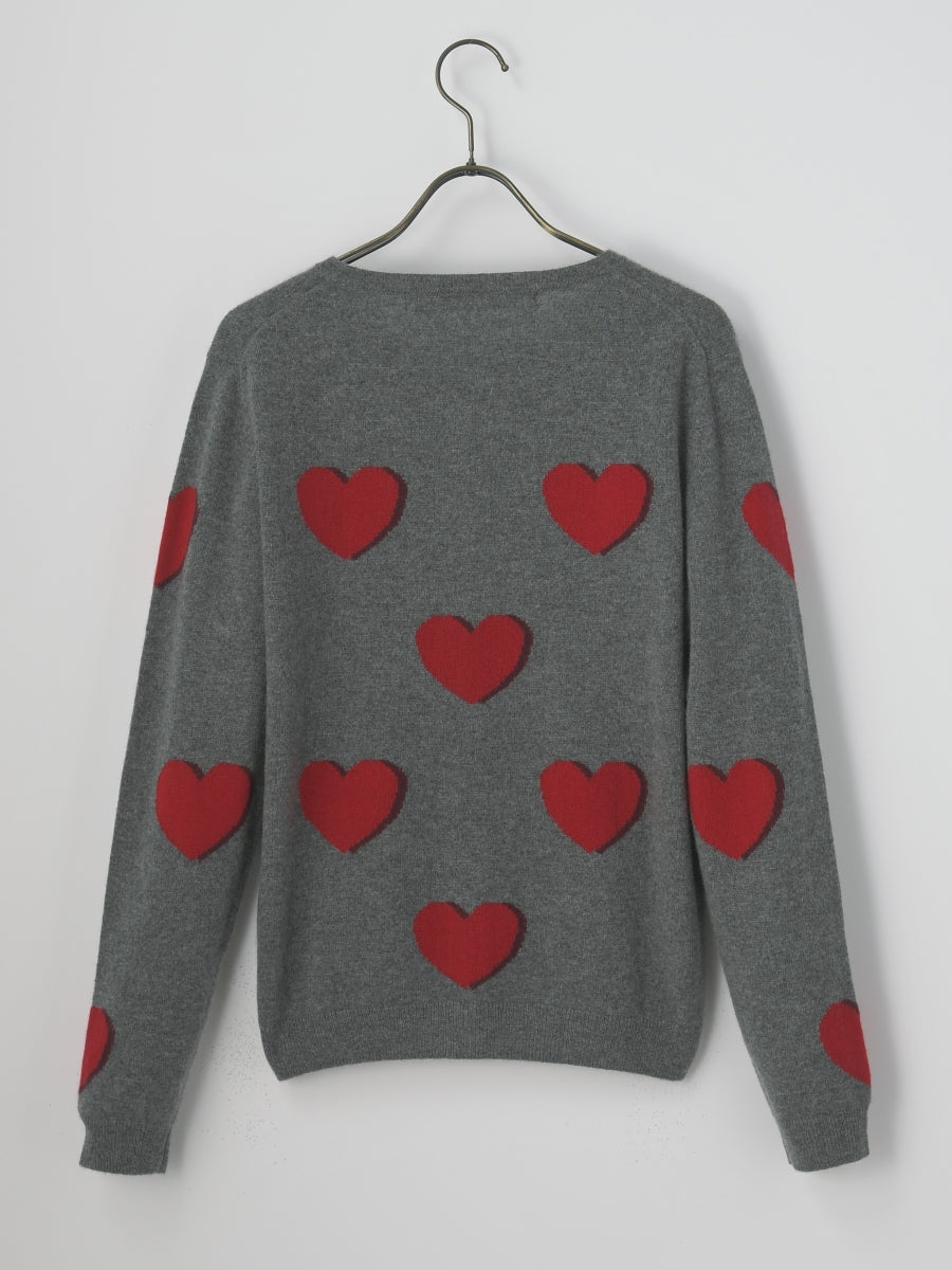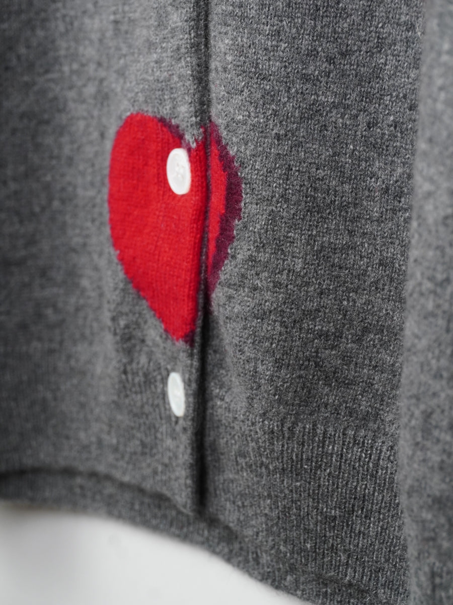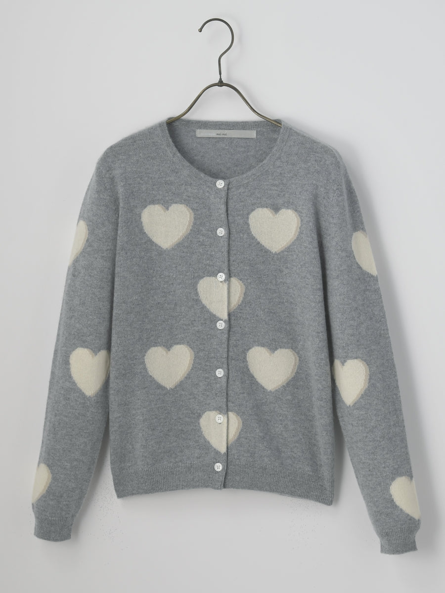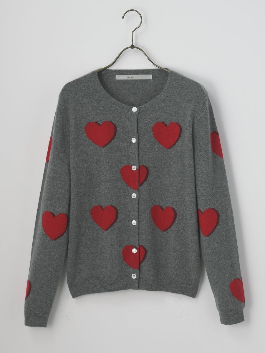 全体に陰影のあるハート柄を施したシンプルカーディガンです。ハート柄を立体的にして存在感が更にアップしました。前後身ごろ・袖まで施されたハート柄で毎日がハッピー気分。