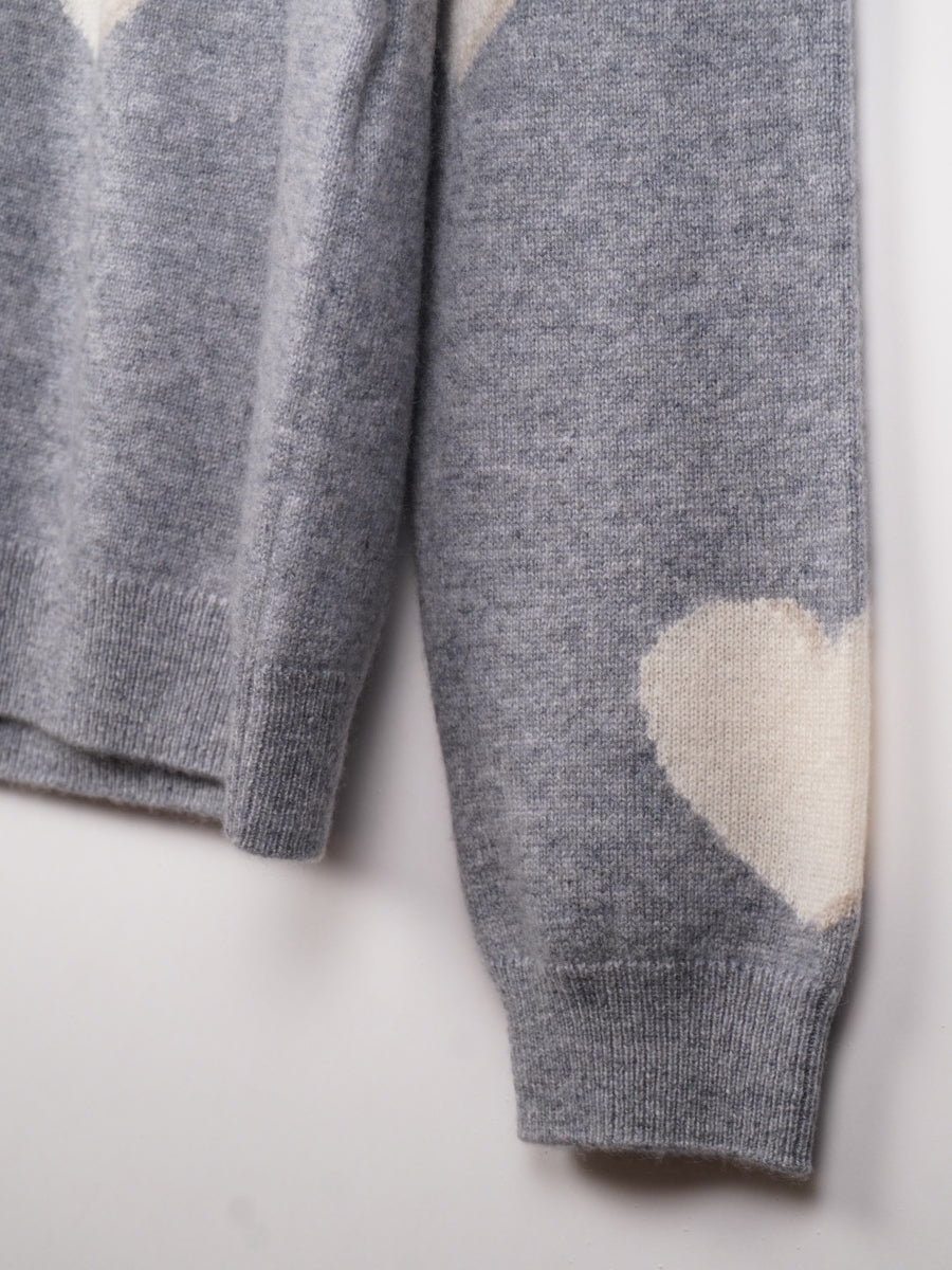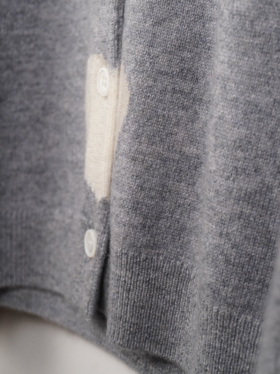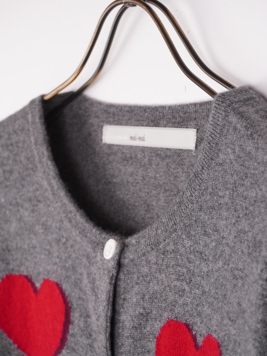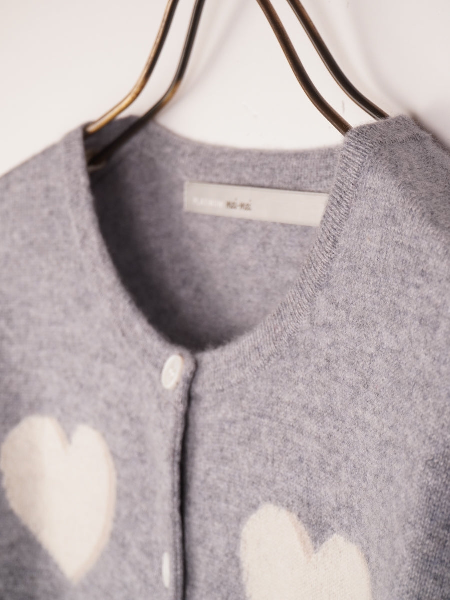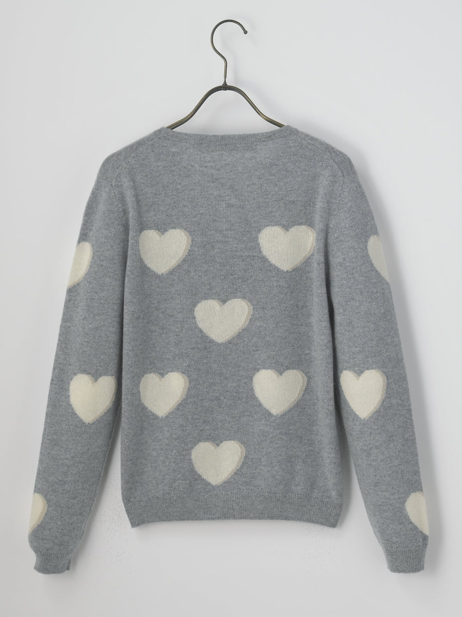 全体に陰影のあるハート柄を施したシンプルカーディガンです。ハート柄を立体的にして存在感が更にアップしました。前後身ごろ・袖まで施されたハート柄で毎日がハッピー気分。