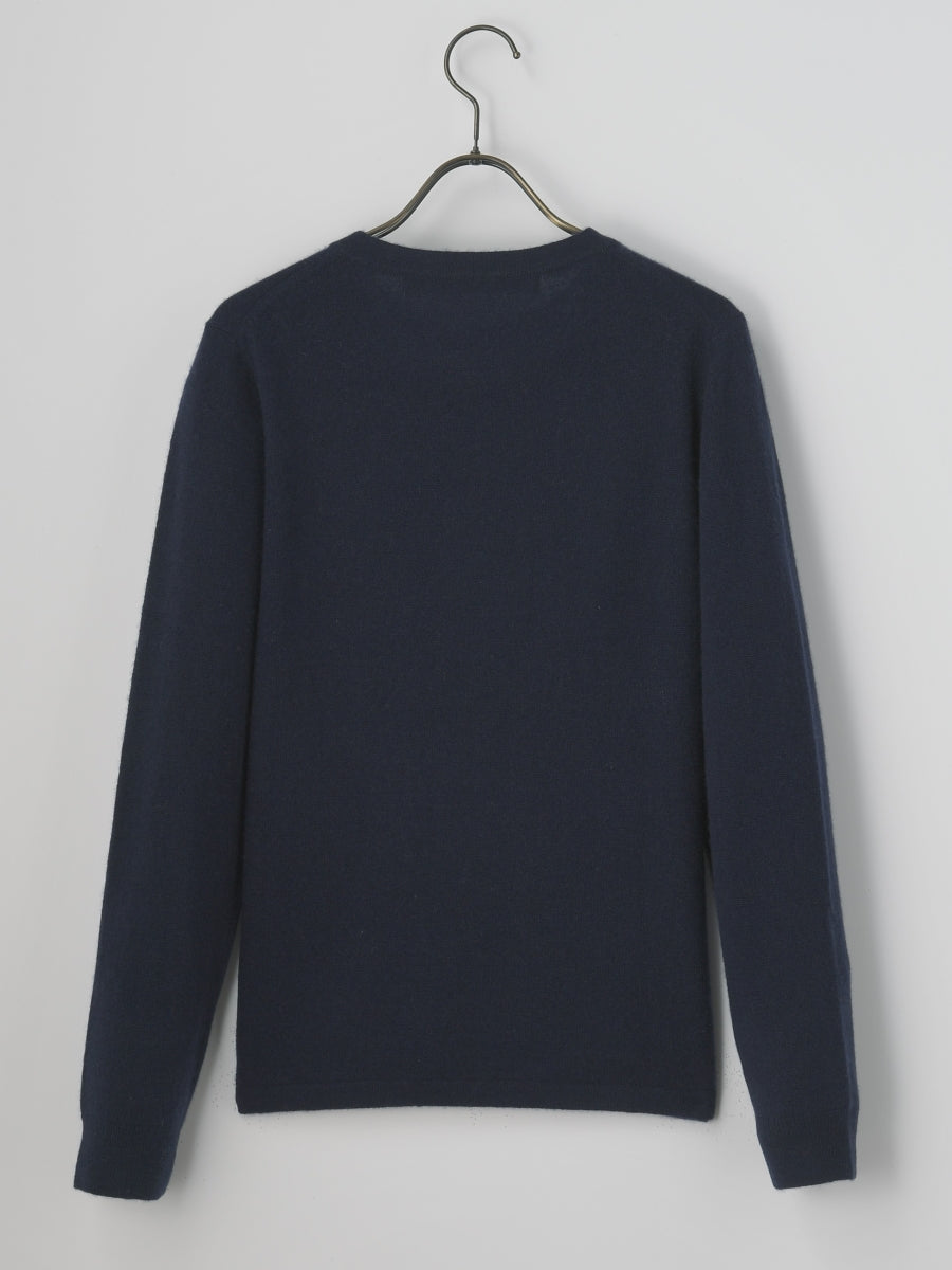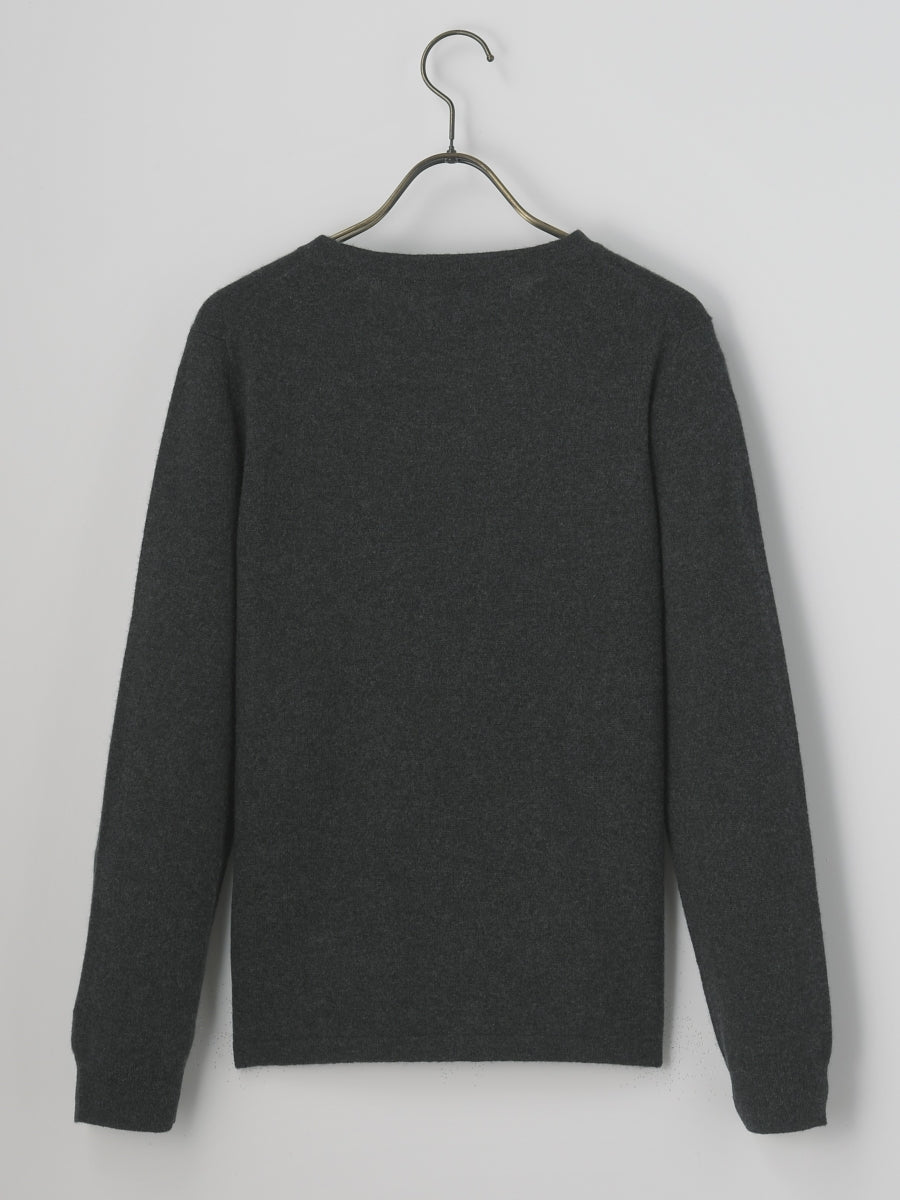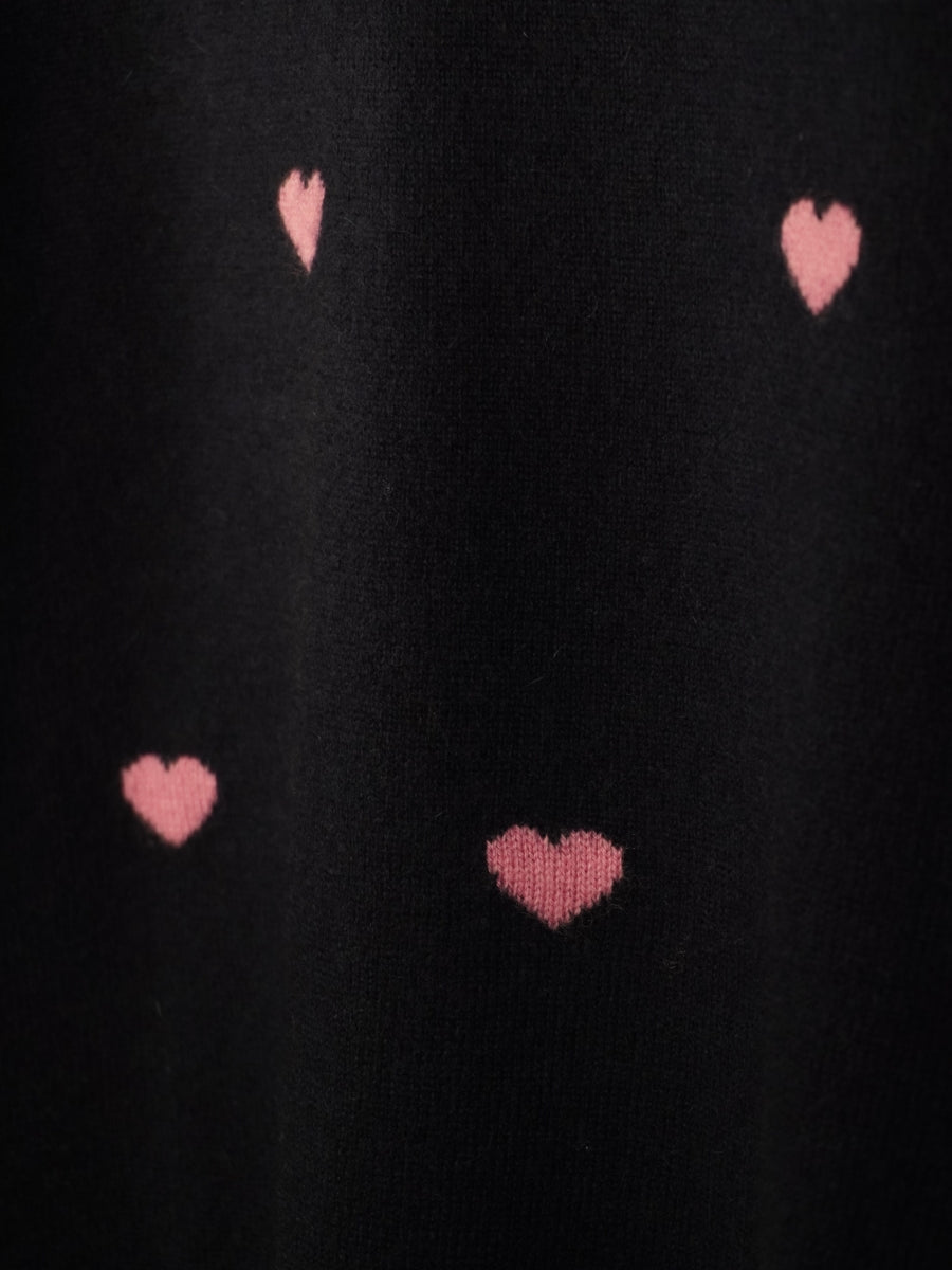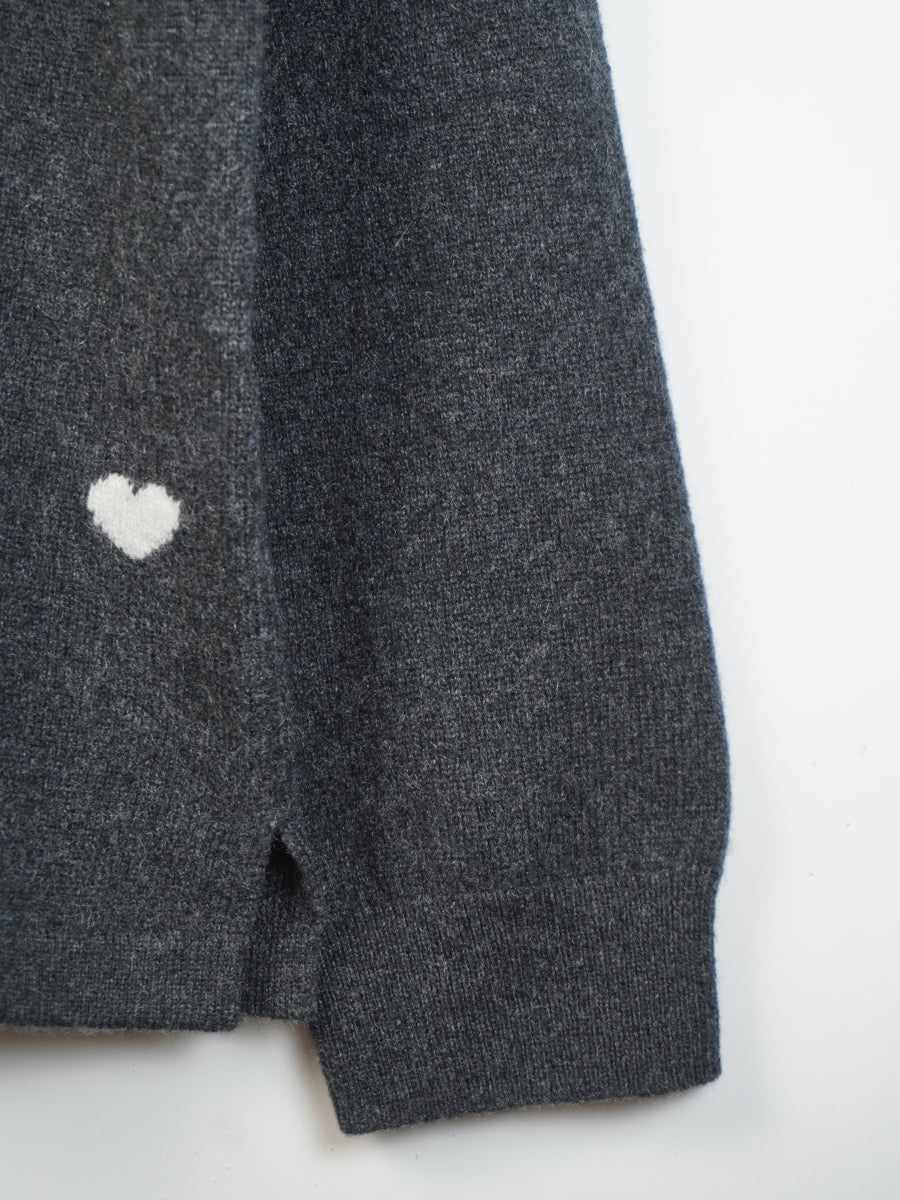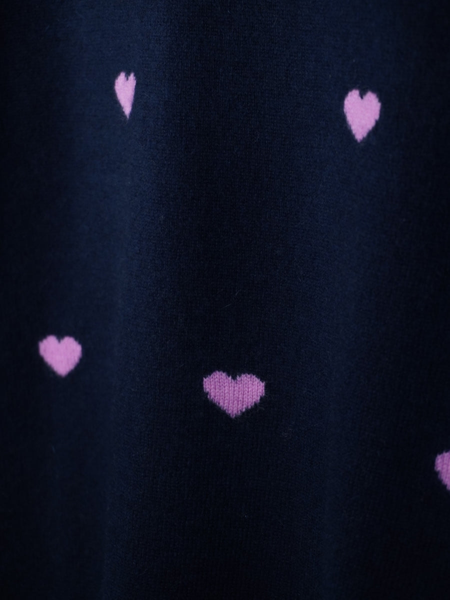前にごろにキュートなハート柄が可愛いカシミヤ100%のクルーネックプルオーバー。ベーシックなアイテムも小さなハート柄で大変身。