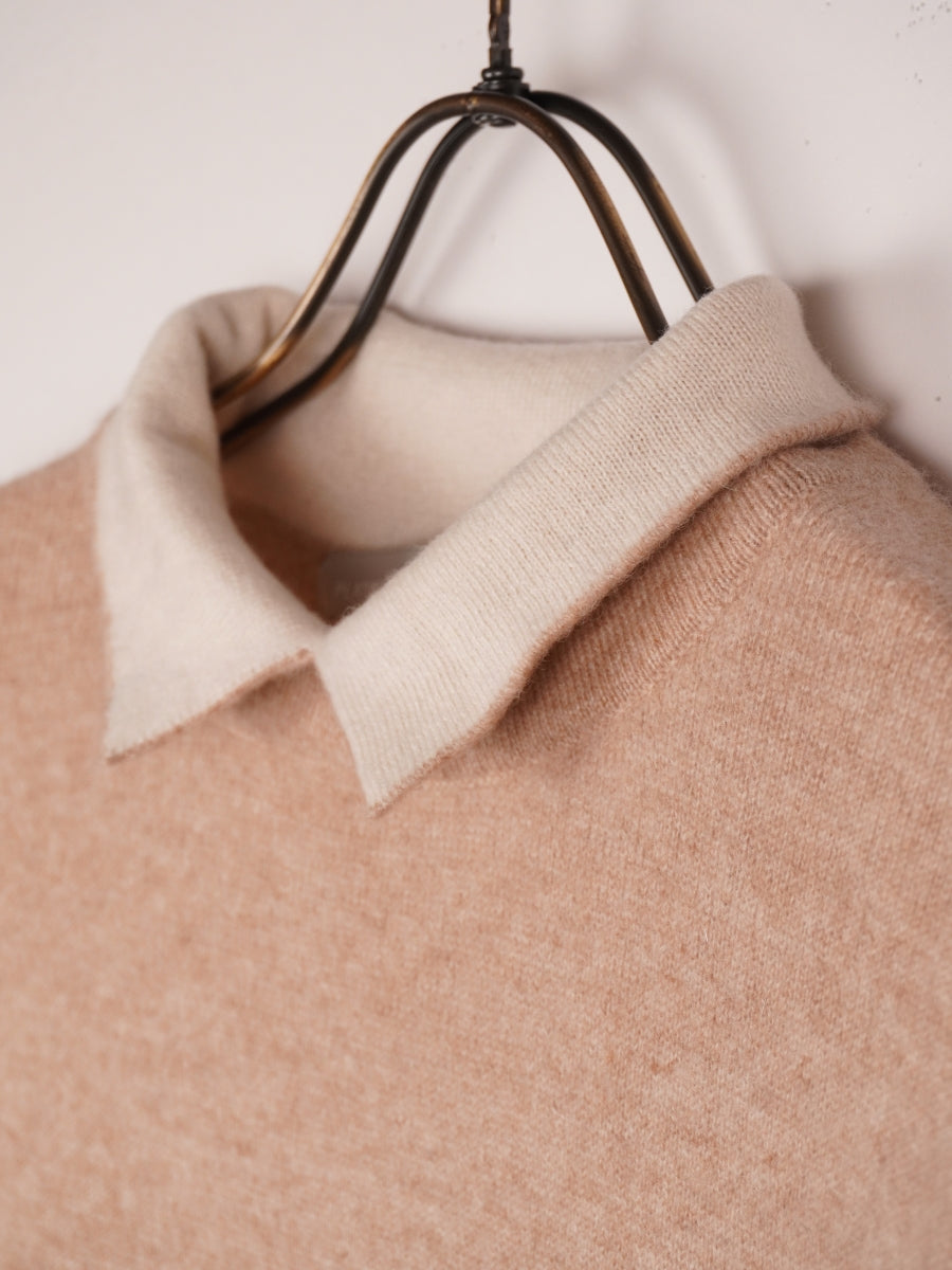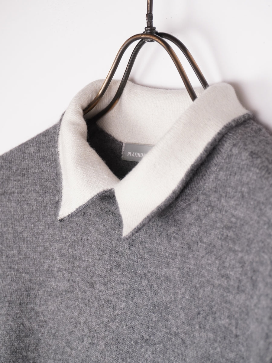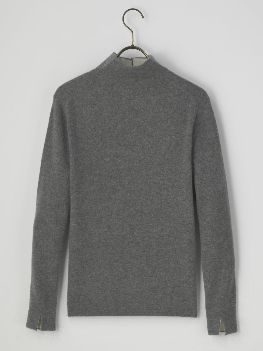 襟元と袖口にスリットを施したデザインプルオーバー。襟元を少し折り返すとミニポロカラーが完成します。幾つかのアレンジを楽しめます。