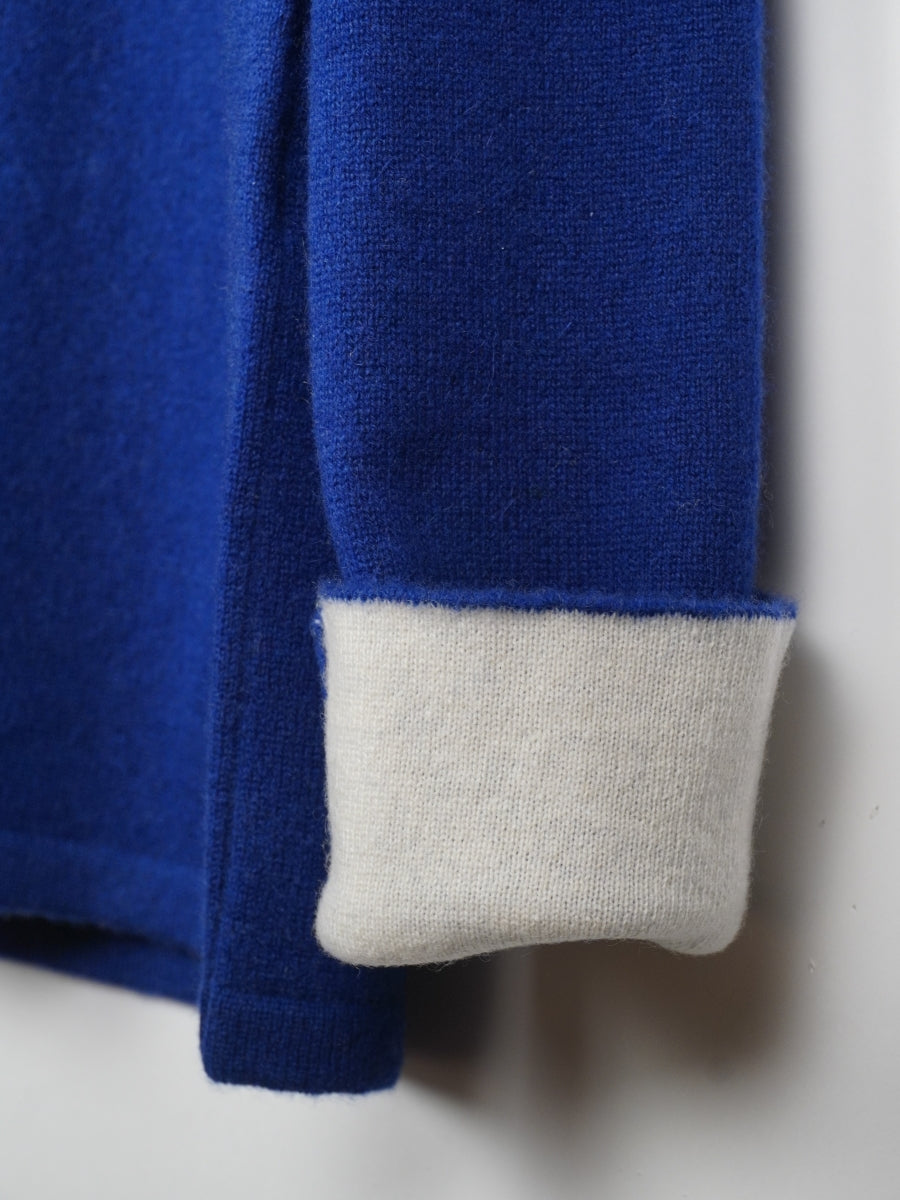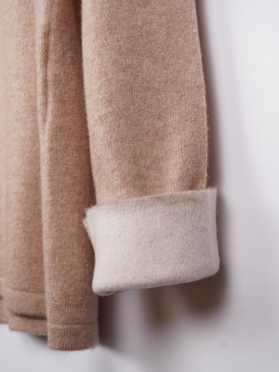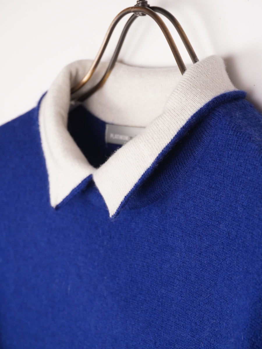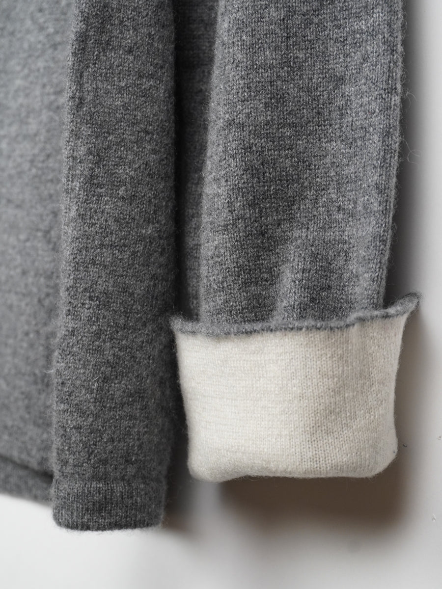襟元と袖口にスリットを施したデザインプルオーバー。襟元を少し折り返すとミニポロカラーが完成します。幾つかのアレンジを楽しめます。