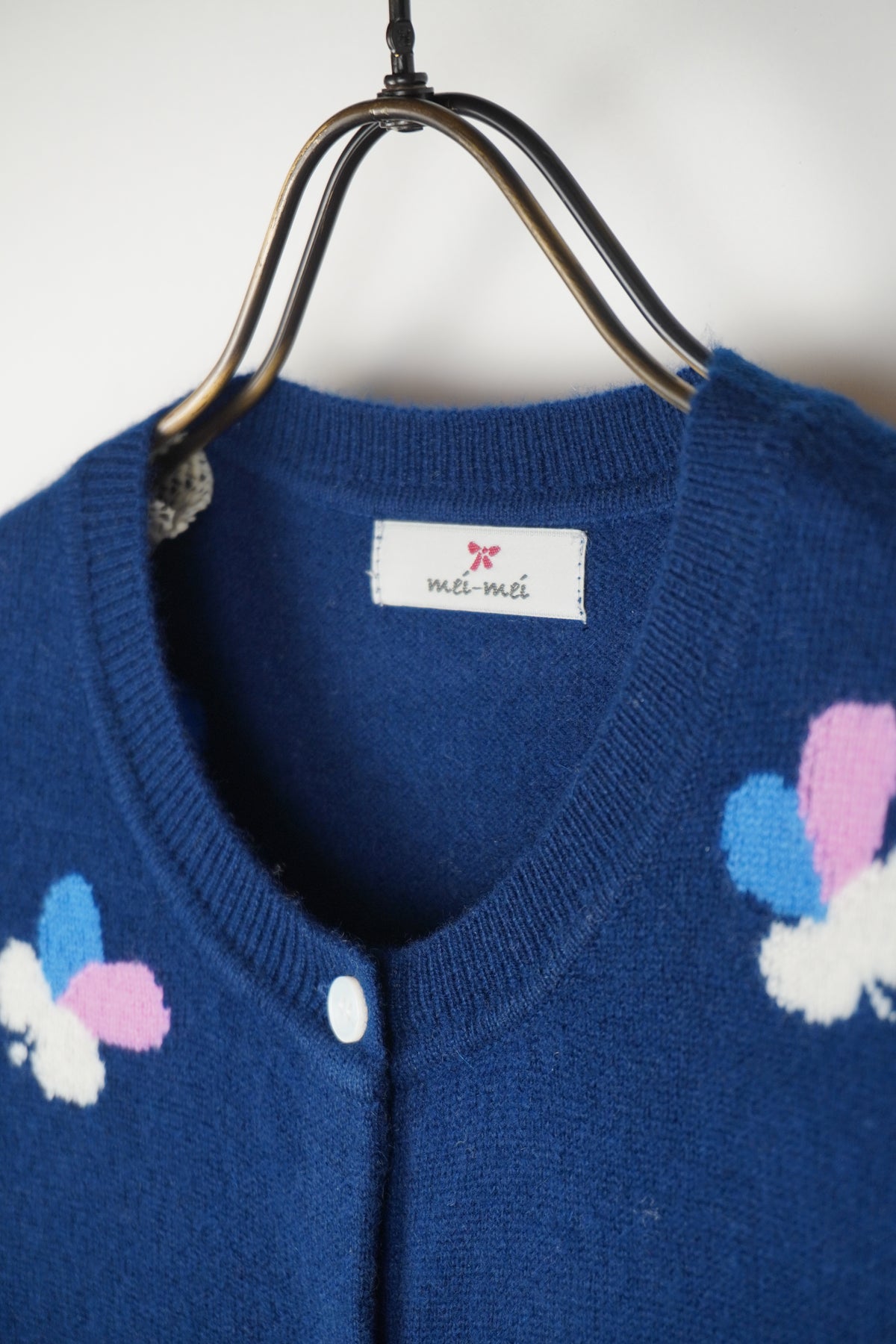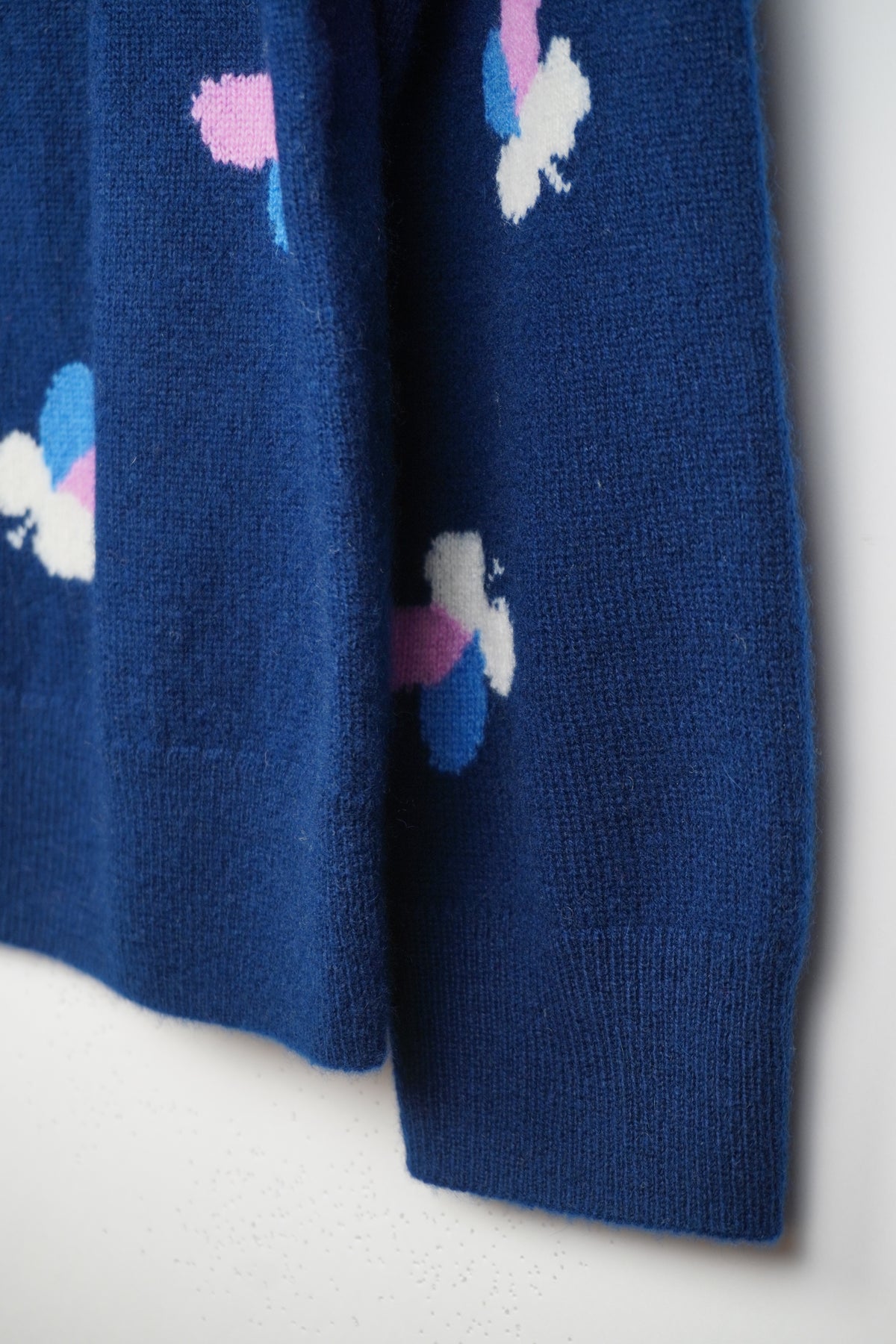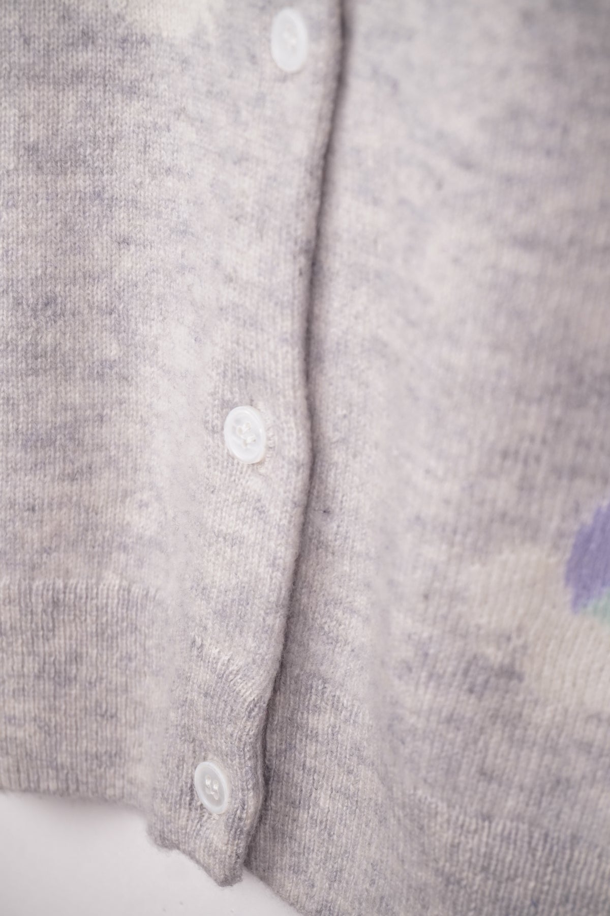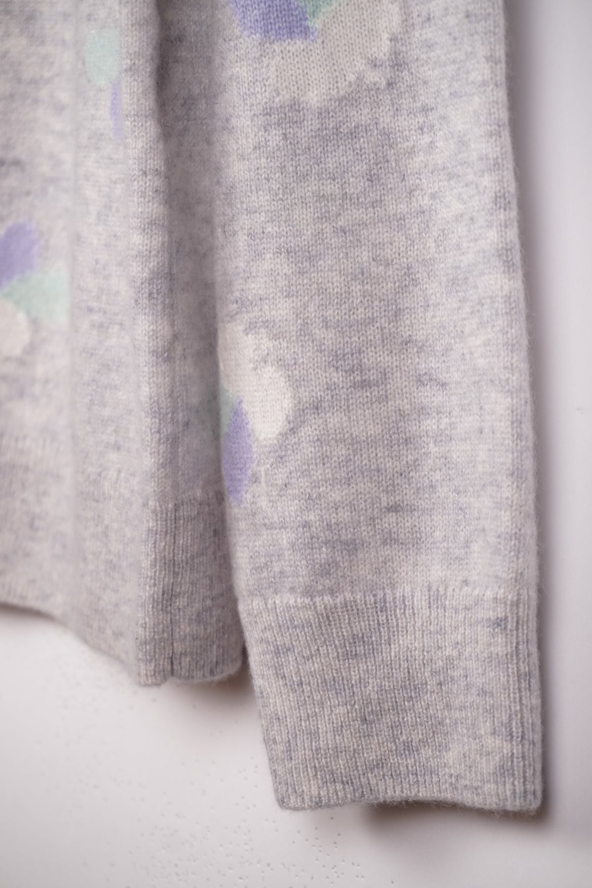 花びらを広げたような柄感がキュートなシンプルカーディガン。カシミヤ素材と柄の持つソフトさが演出されて、着ていると少し春さえ感じるでしょう。