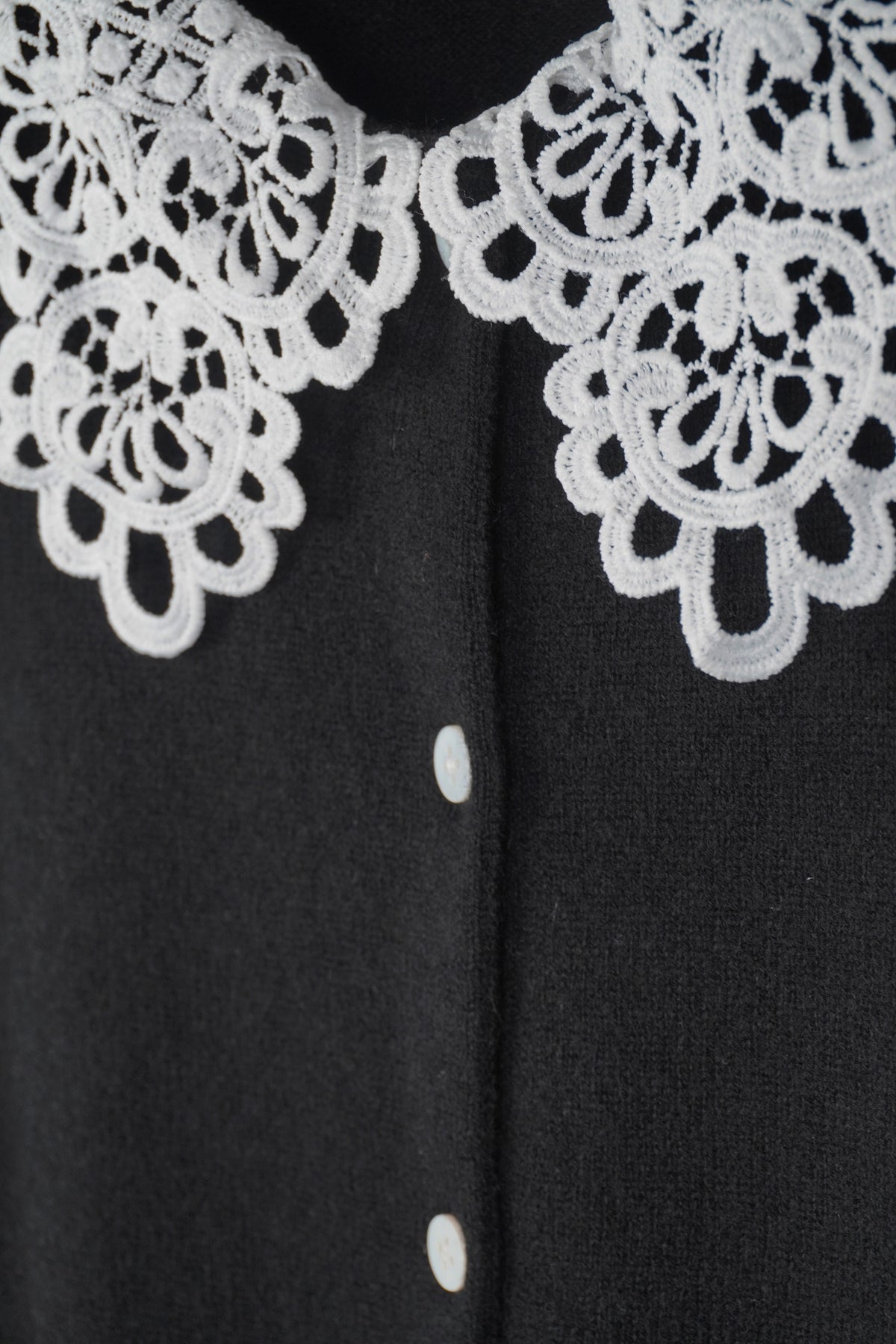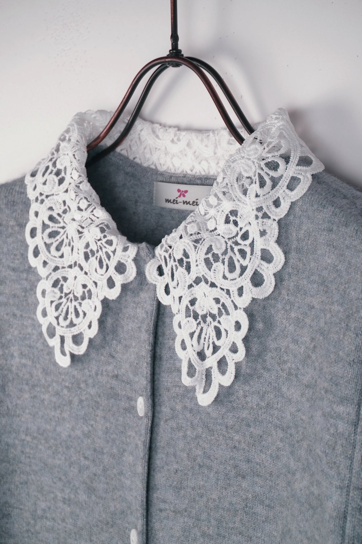 上質なカシミヤ素材と肌触りの良いケミカルレースが組み合わさった貴賓あるカーディガンです。レースの上品さが全体をより一層華やかにしてくれます。