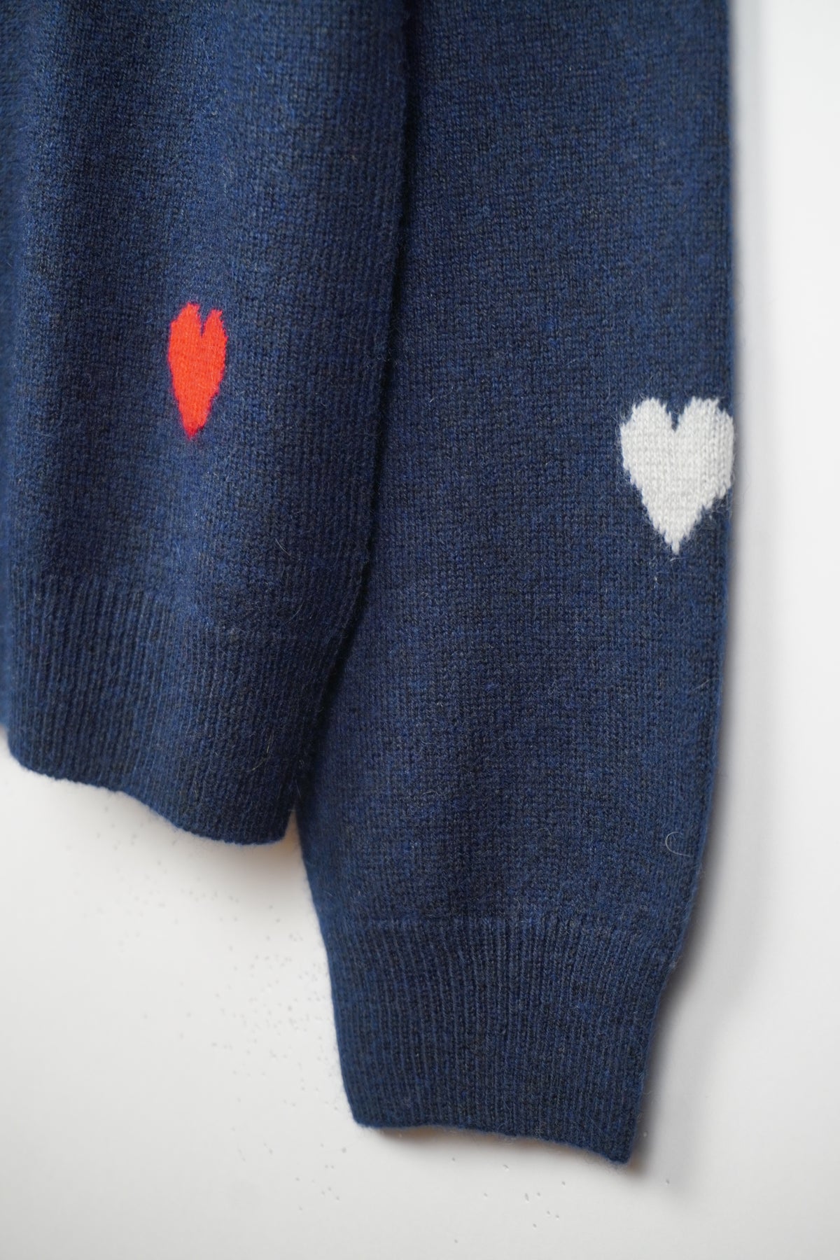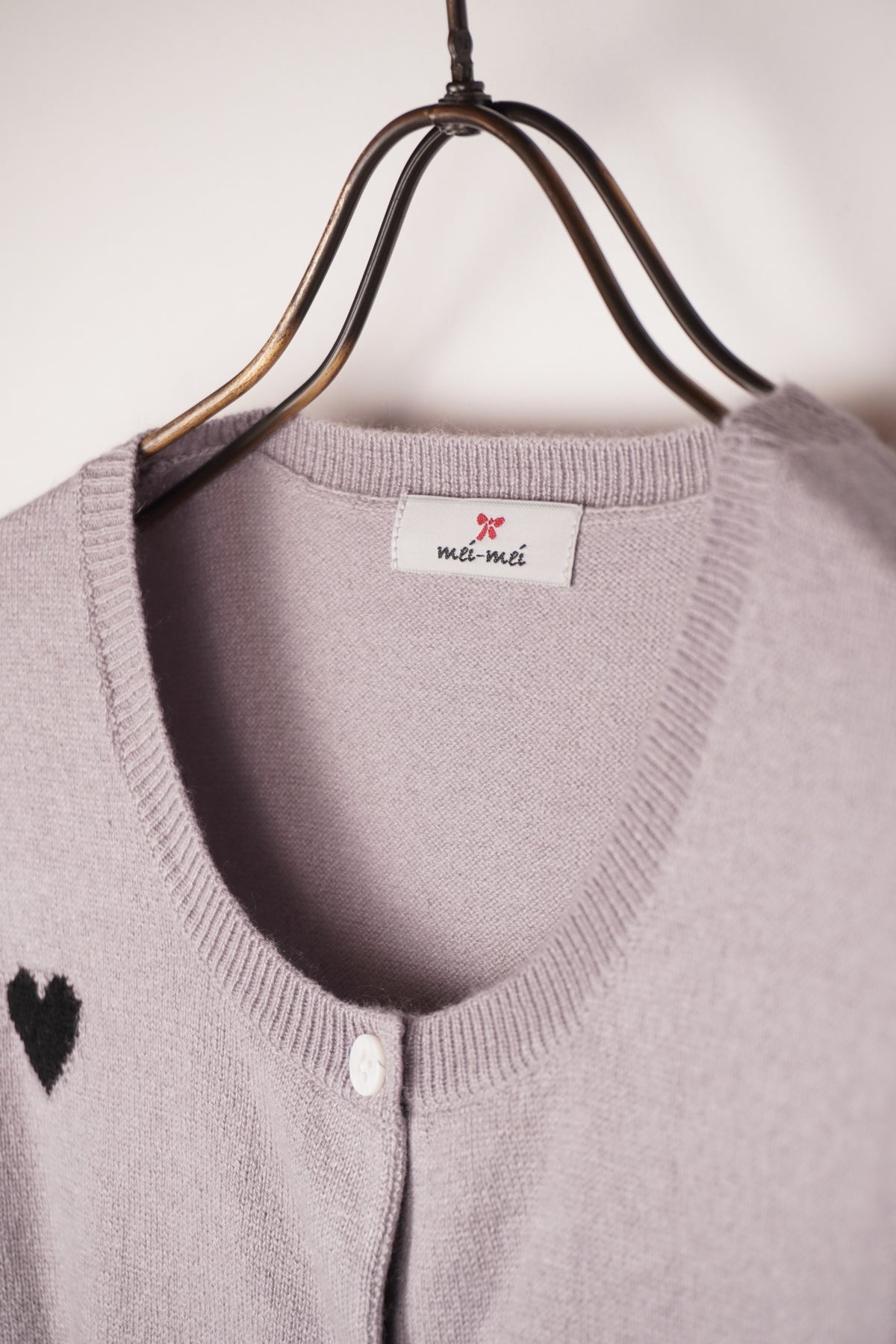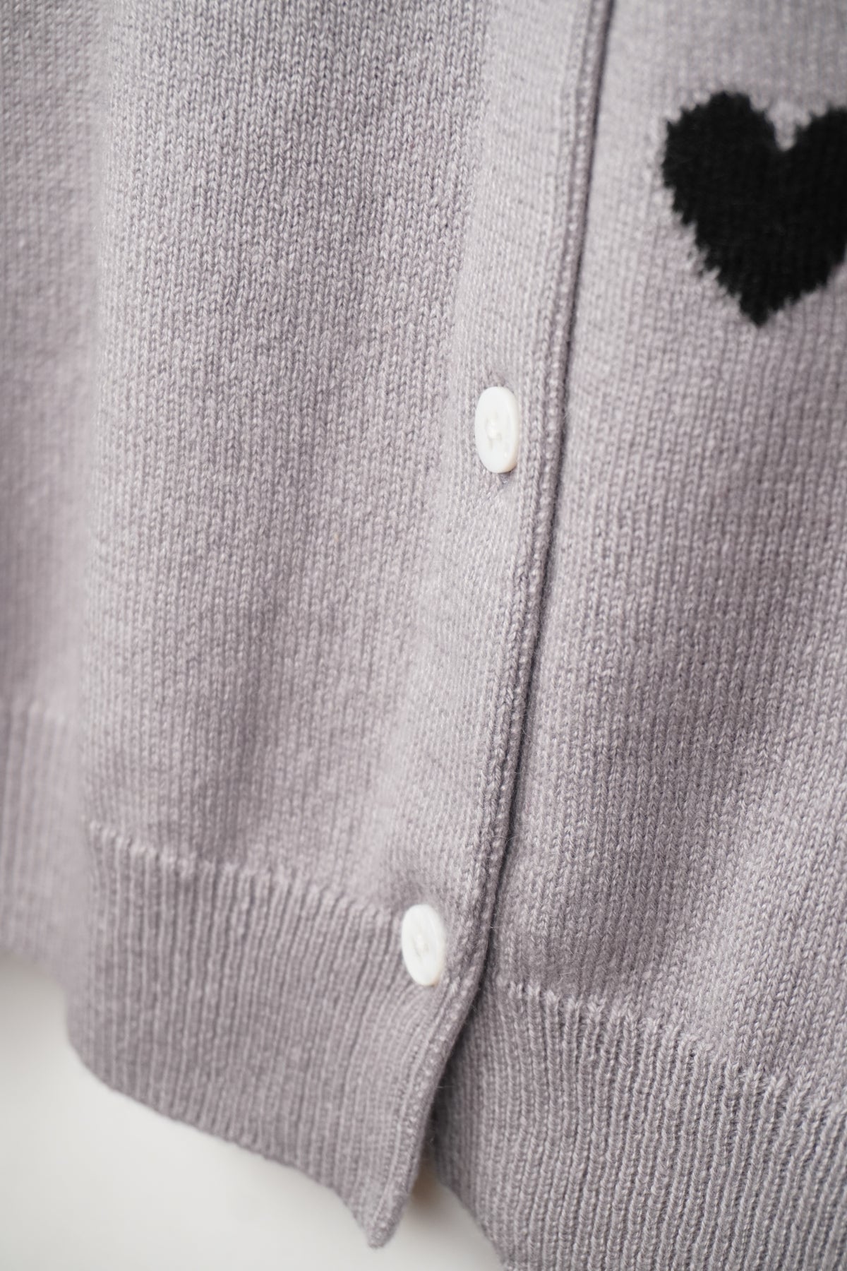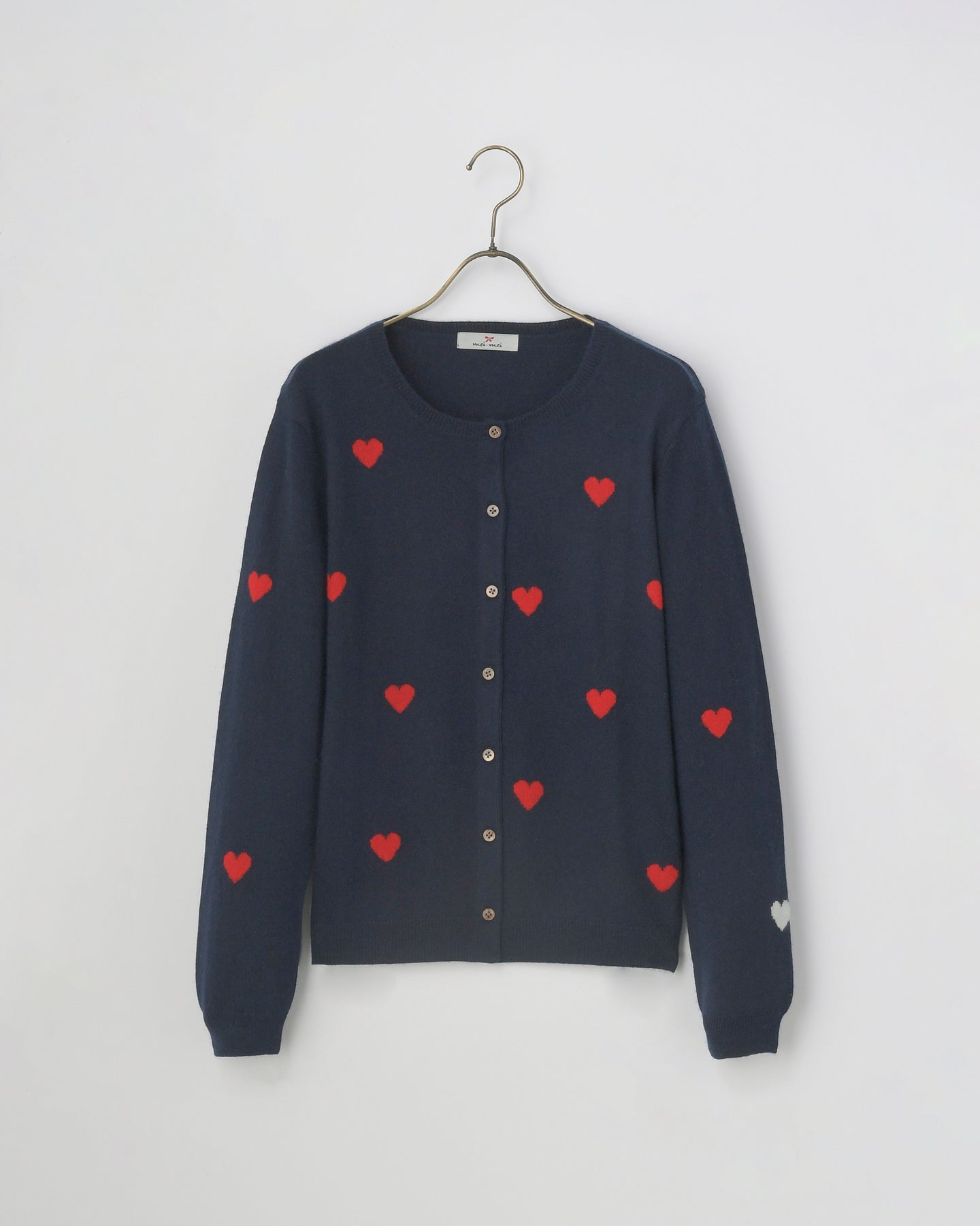 シルクカシミヤのソフトな素材感に小さなハートがチャーミングなカーディガンです。ハートモチーフは、この季節ならでは存在感!
