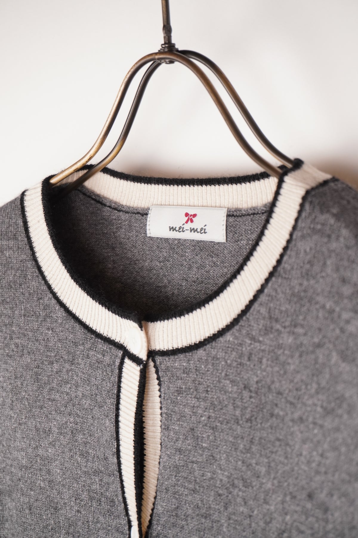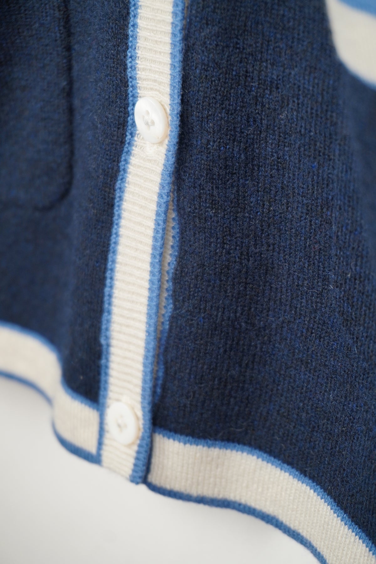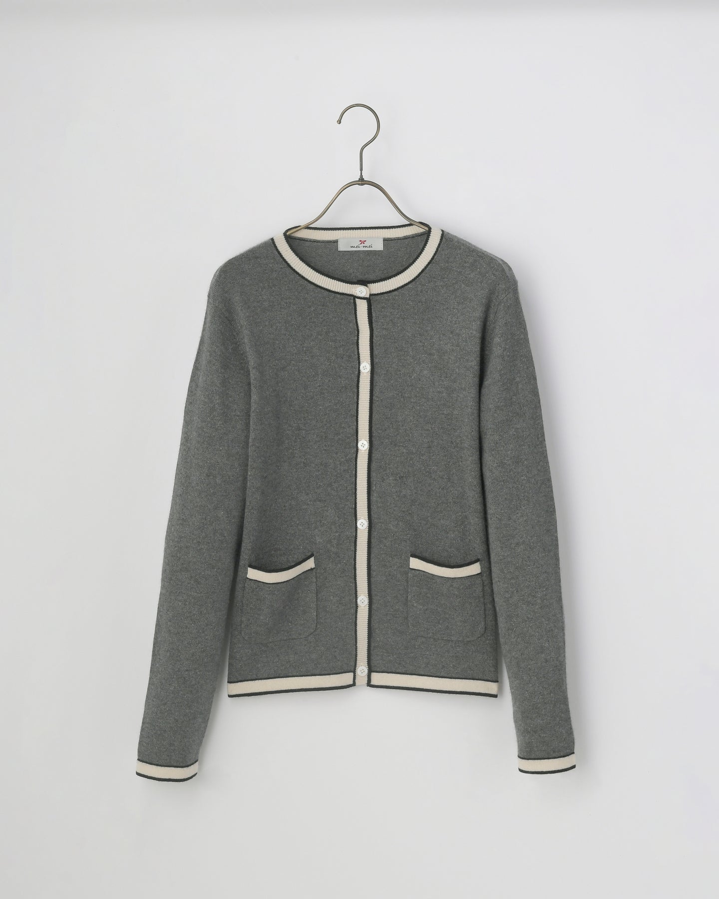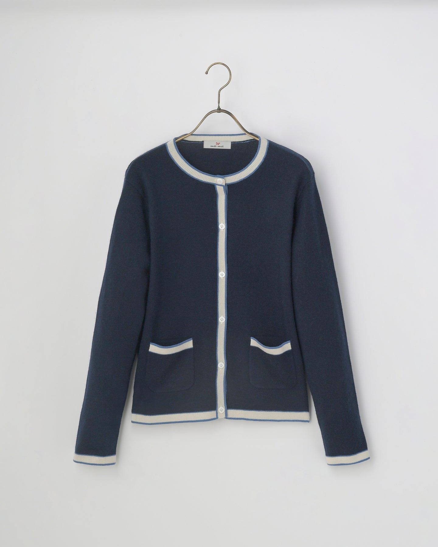 首回りから前立てポケットにアクセントラインが可愛いカーディガンです。