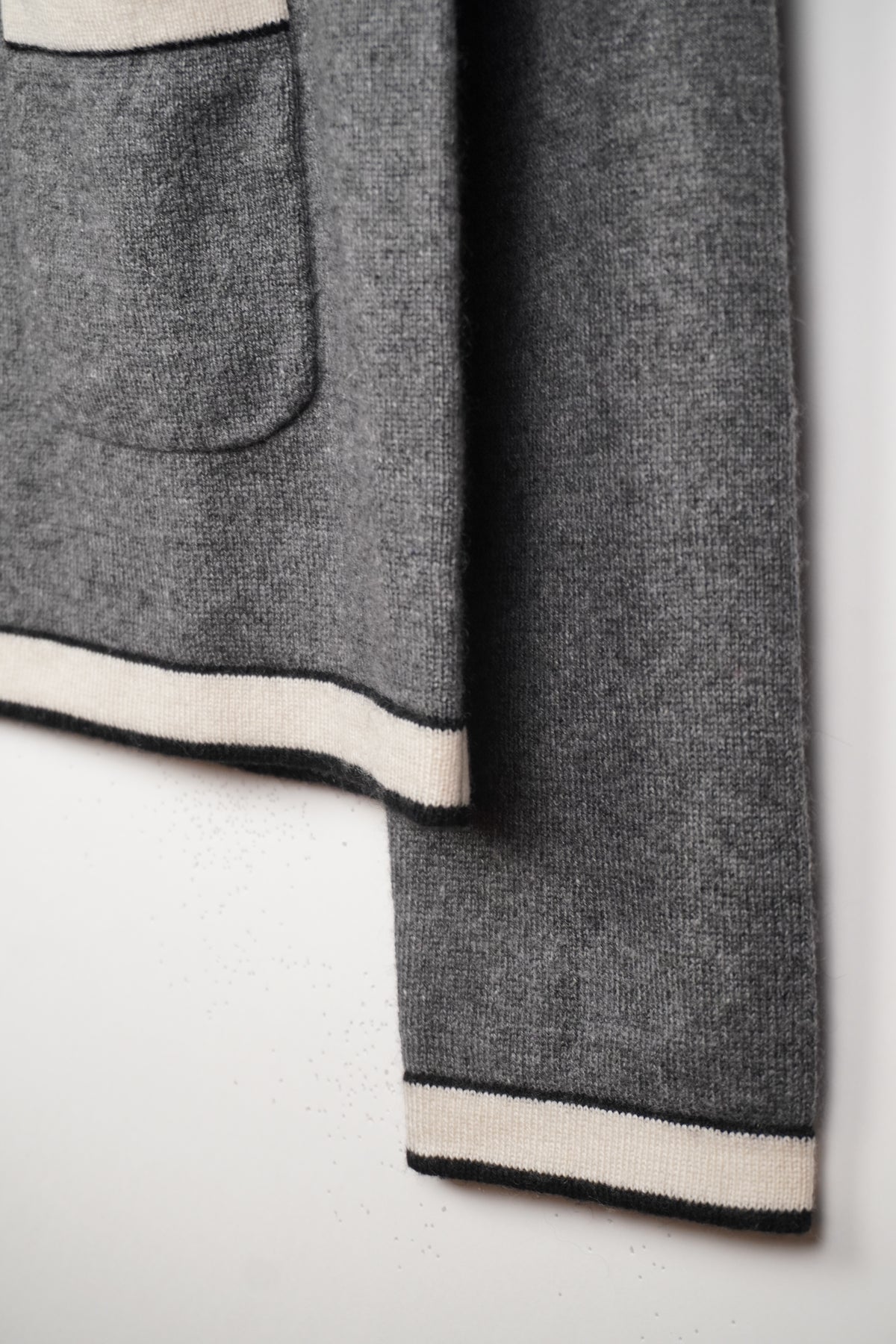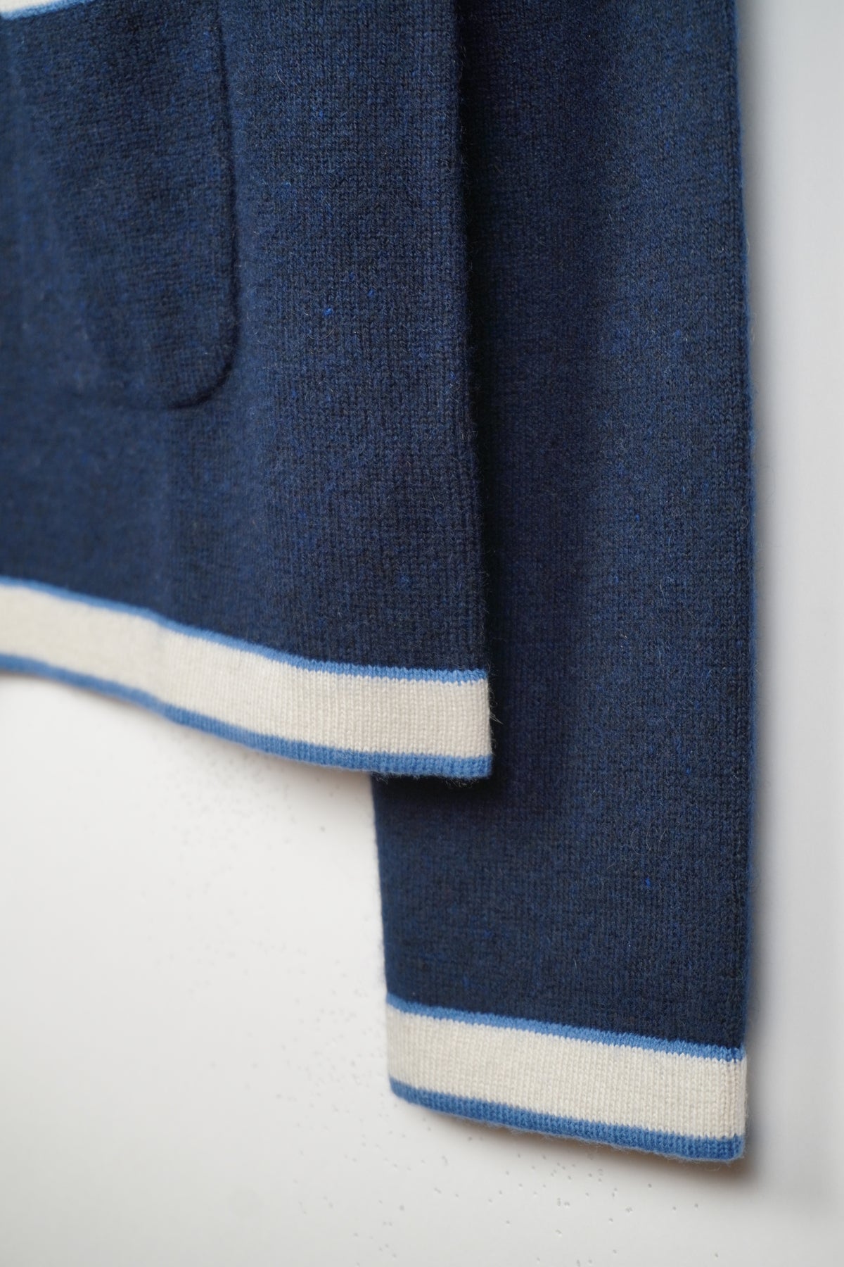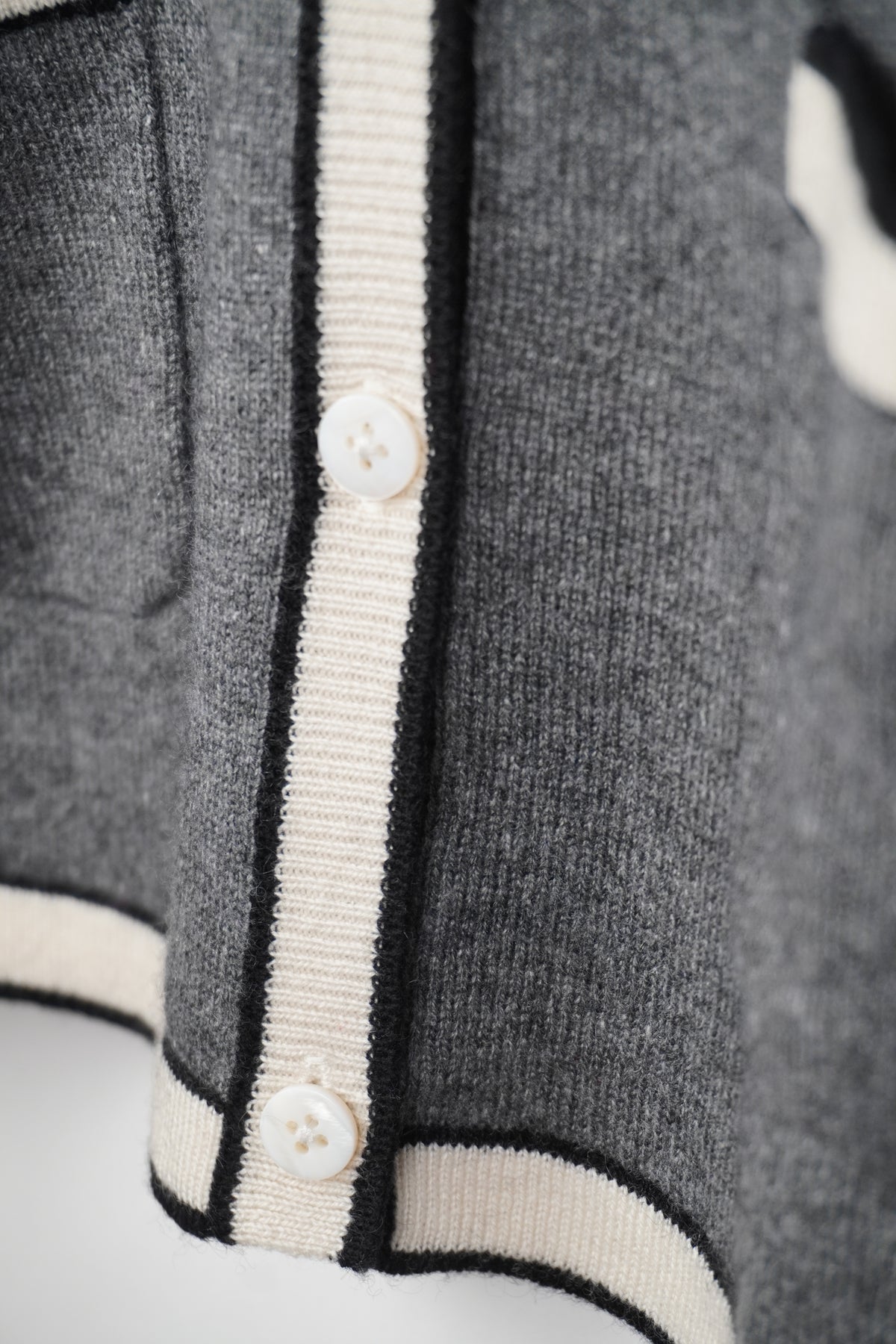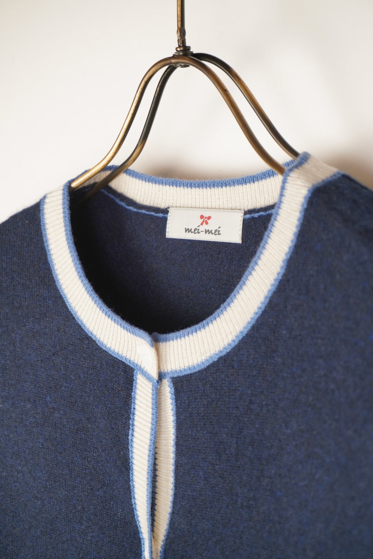 首回りから前立てポケットにアクセントラインが可愛いカーディガンです。