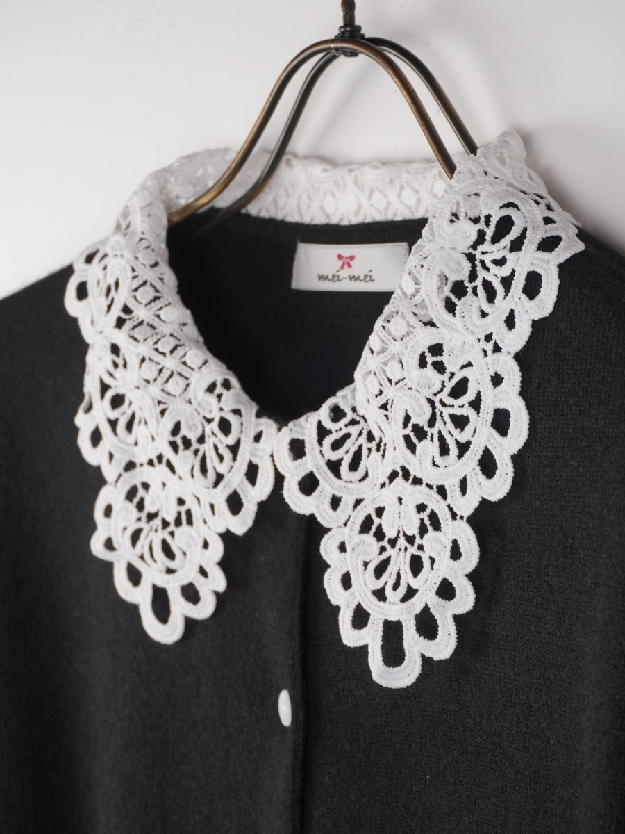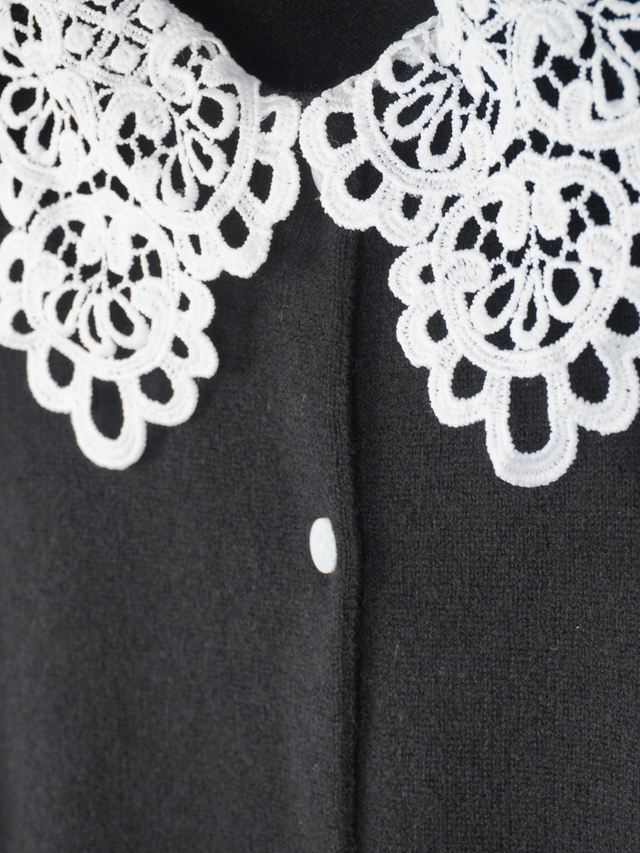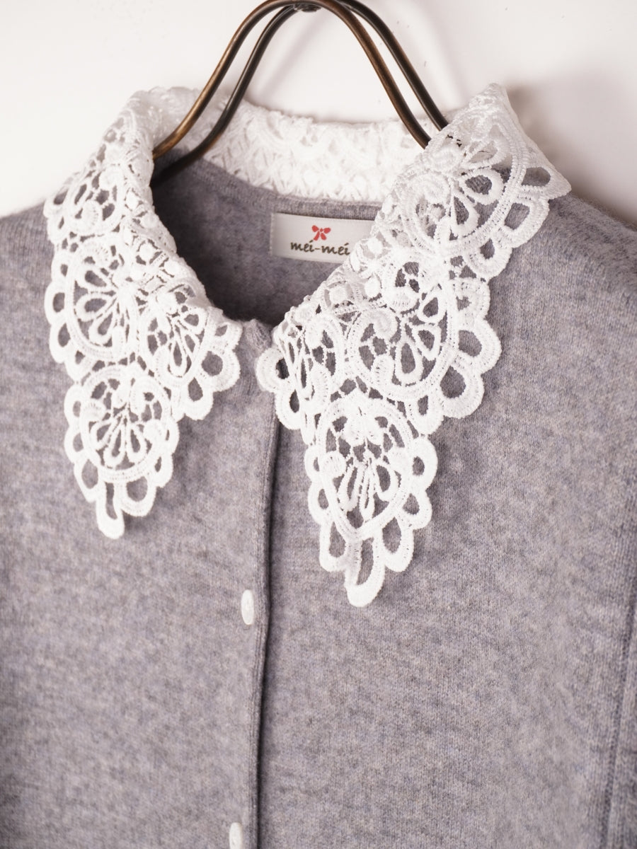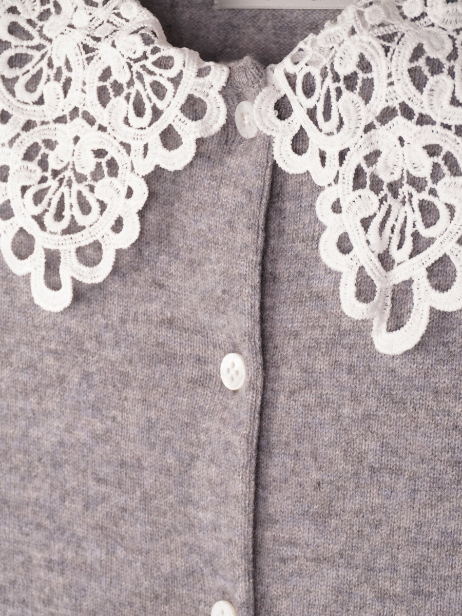 上質なカシミヤ素材と肌触りの良いケミカルレースが組み合わさった貴賓あるカーディガンです。レースの上品さが全体をより一層華やかにしてくれます。