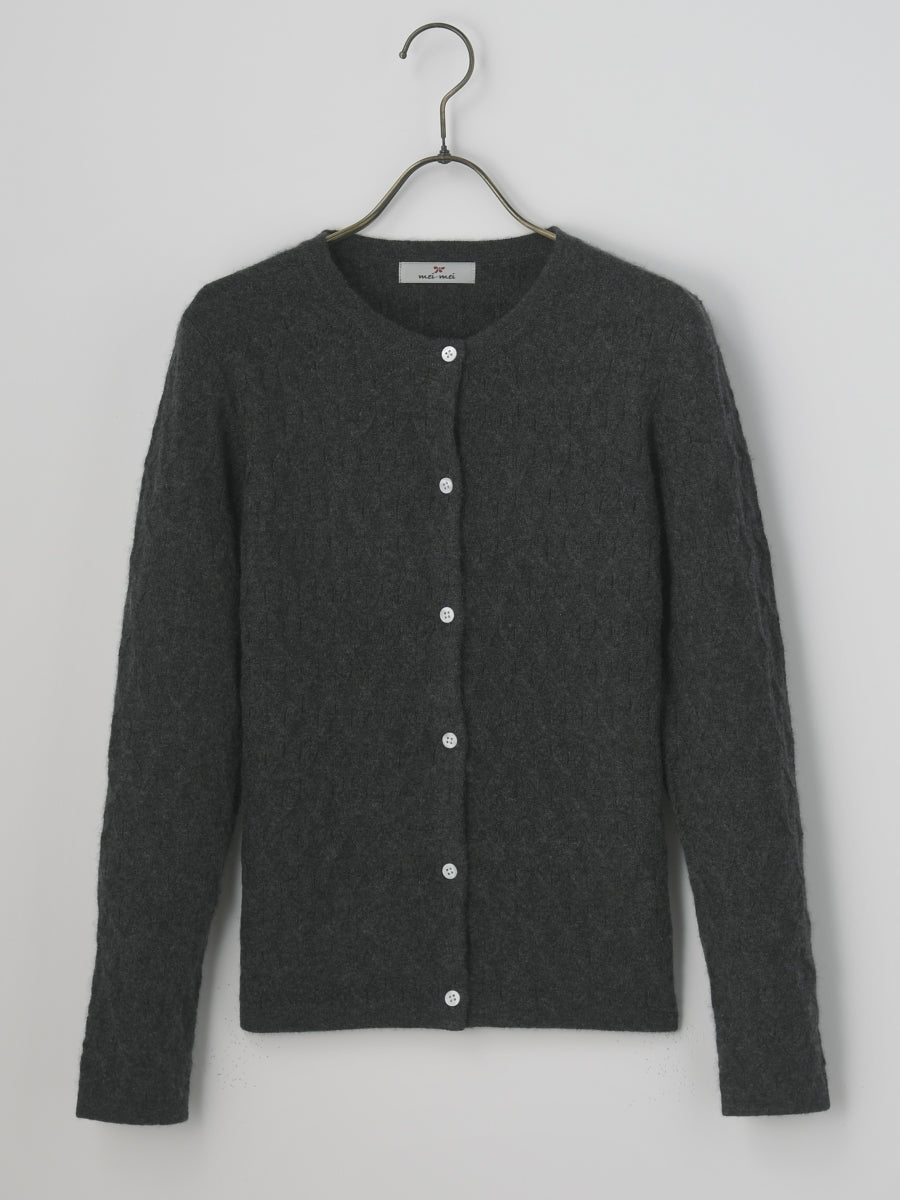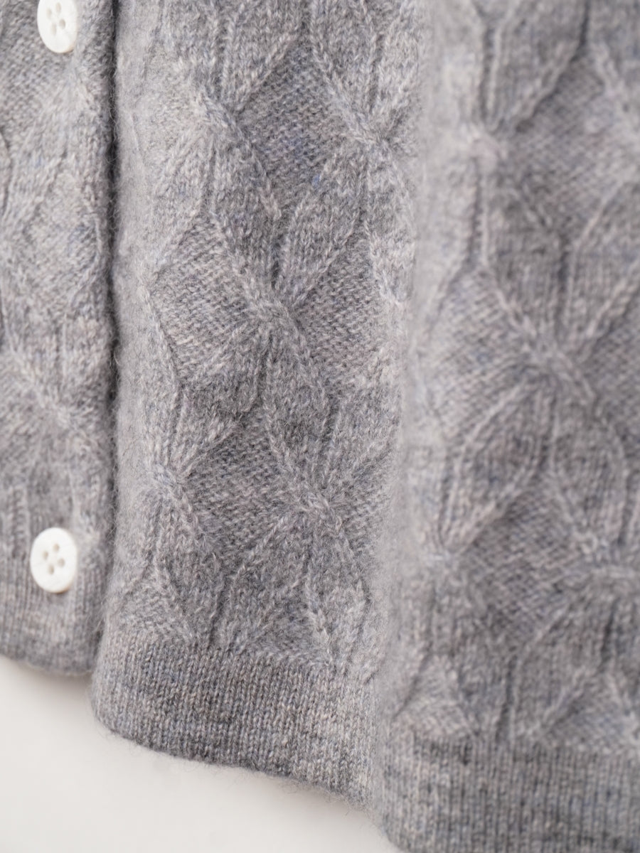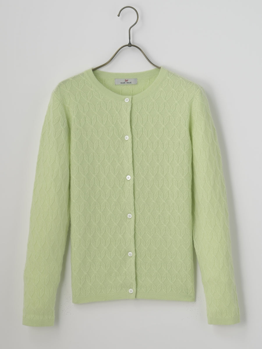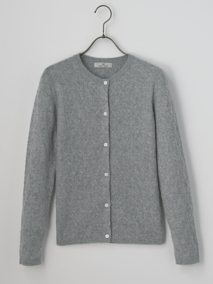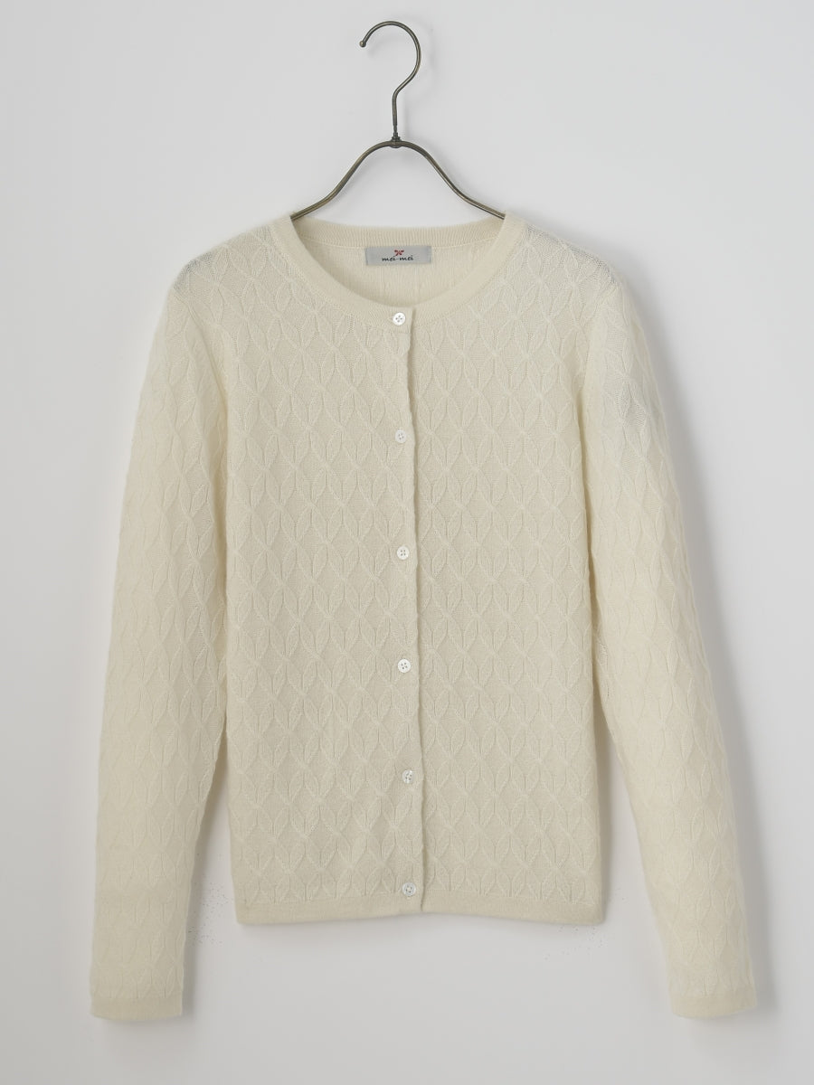 まるで綿あめを纏うようなカーディガンは、カシミヤの風合いを思う存分味わえる1枚です。無地ライクだけど繊細な小花モチーフが着るたびに気持ちがワクワクします。
