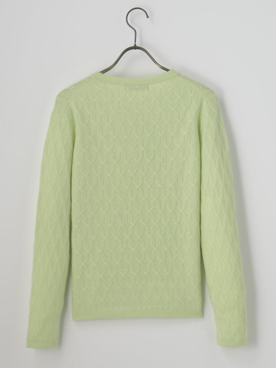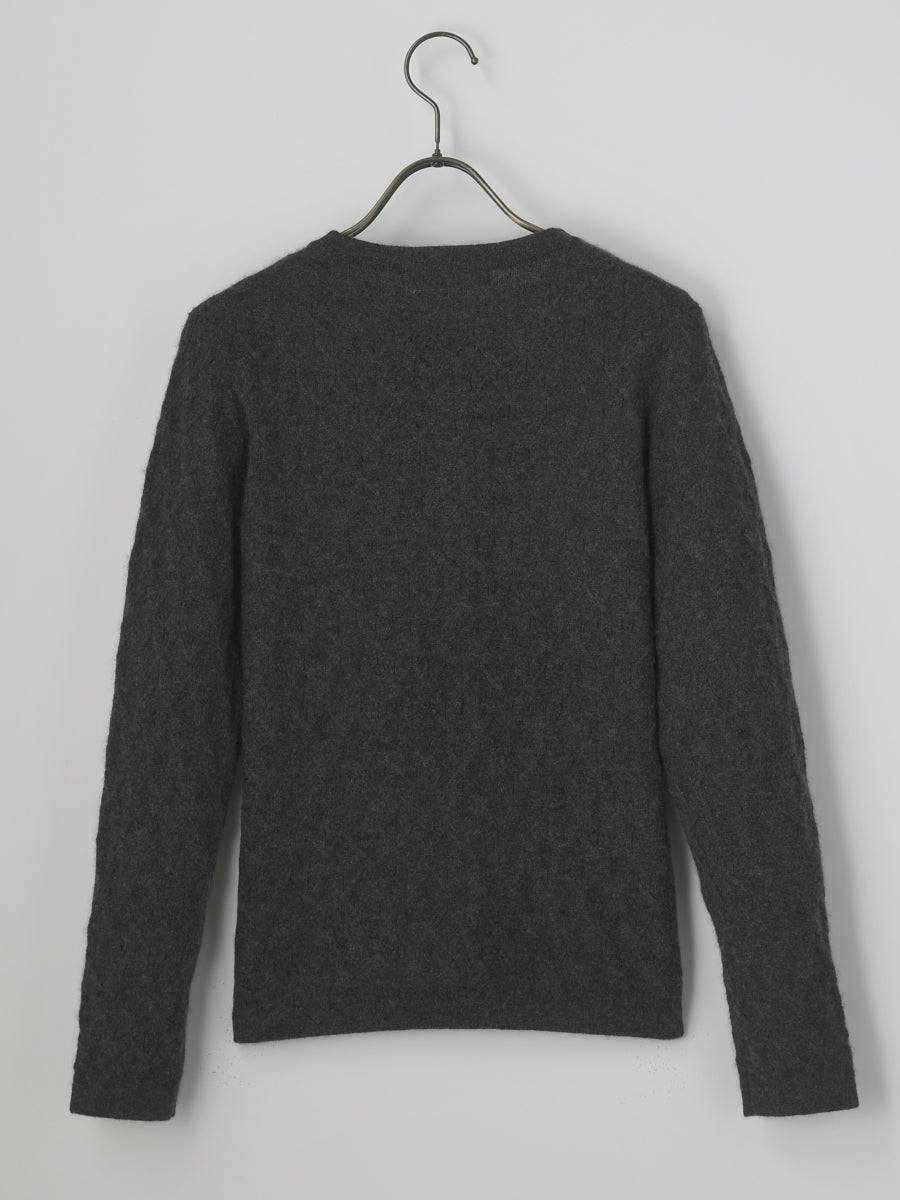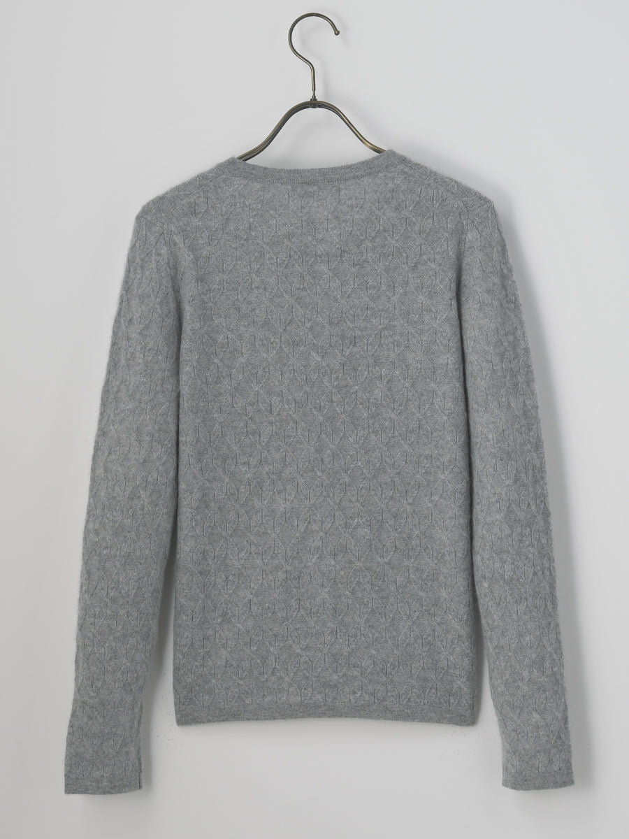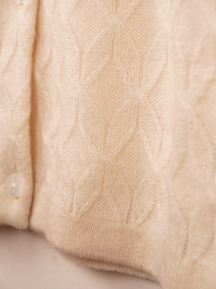 まるで綿あめを纏うようなカーディガンは、カシミヤの風合いを思う存分味わえる1枚です。無地ライクだけど繊細な小花モチーフが着るたびに気持ちがワクワクします。