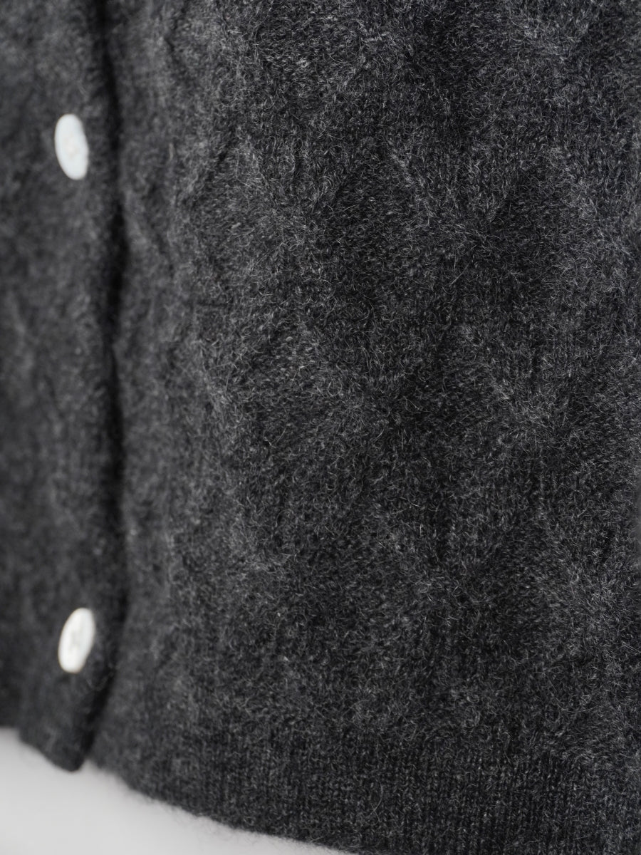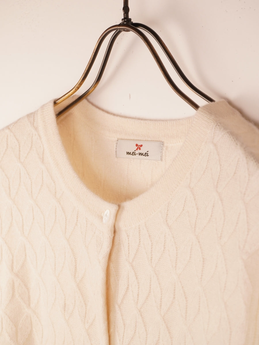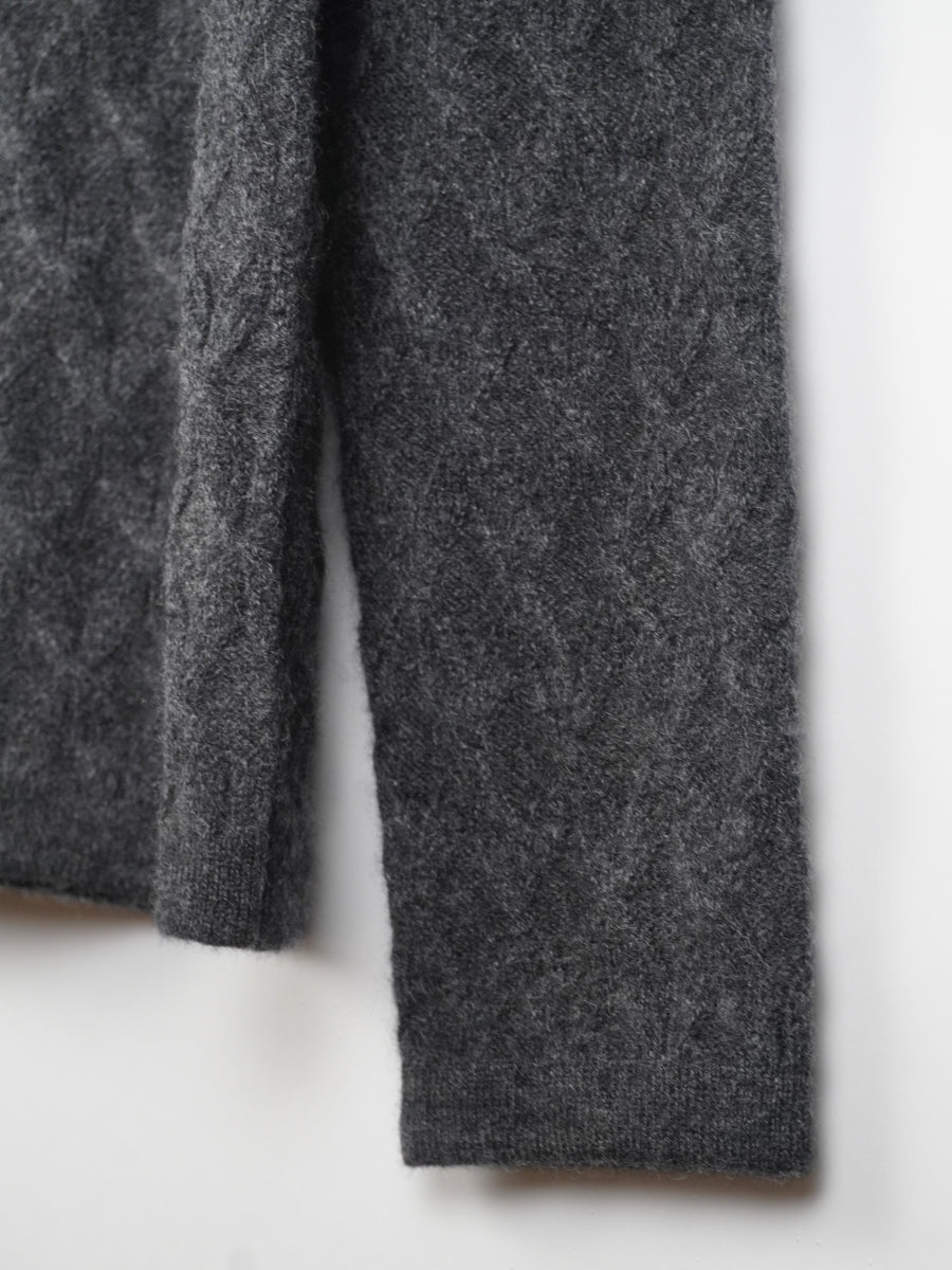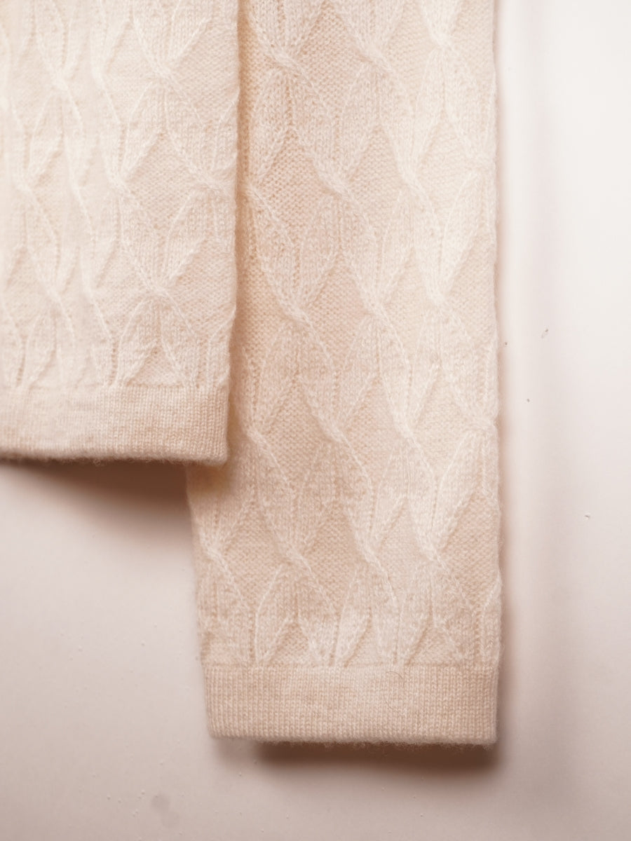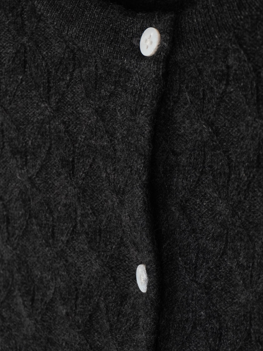 まるで綿あめを纏うようなカーディガンは、カシミヤの風合いを思う存分味わえる1枚です。無地ライクだけど繊細な小花モチーフが着るたびに気持ちがワクワクします。