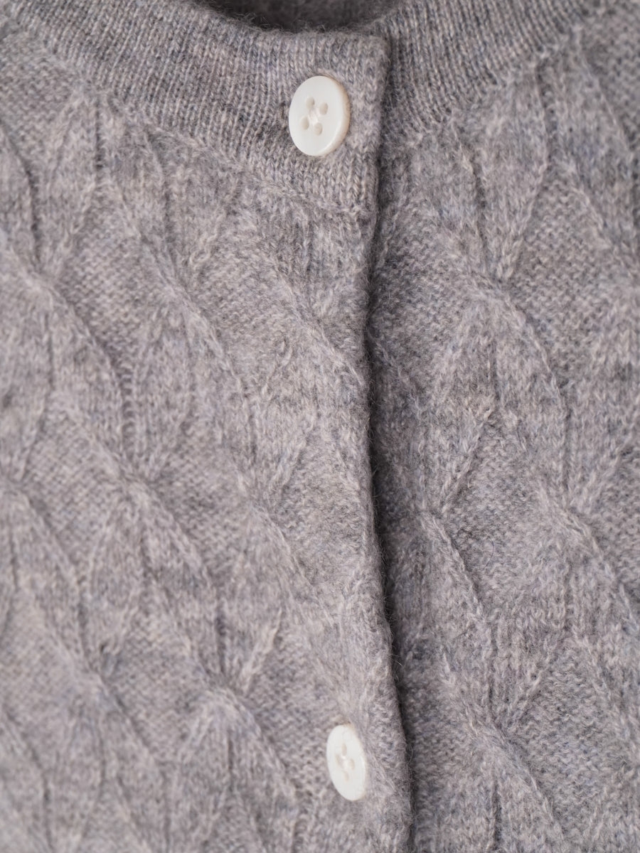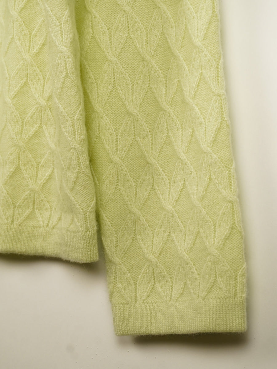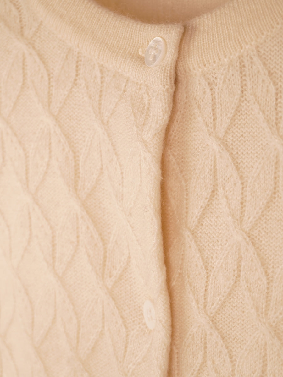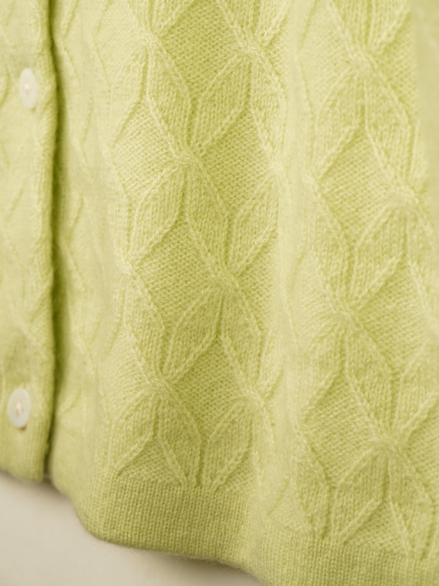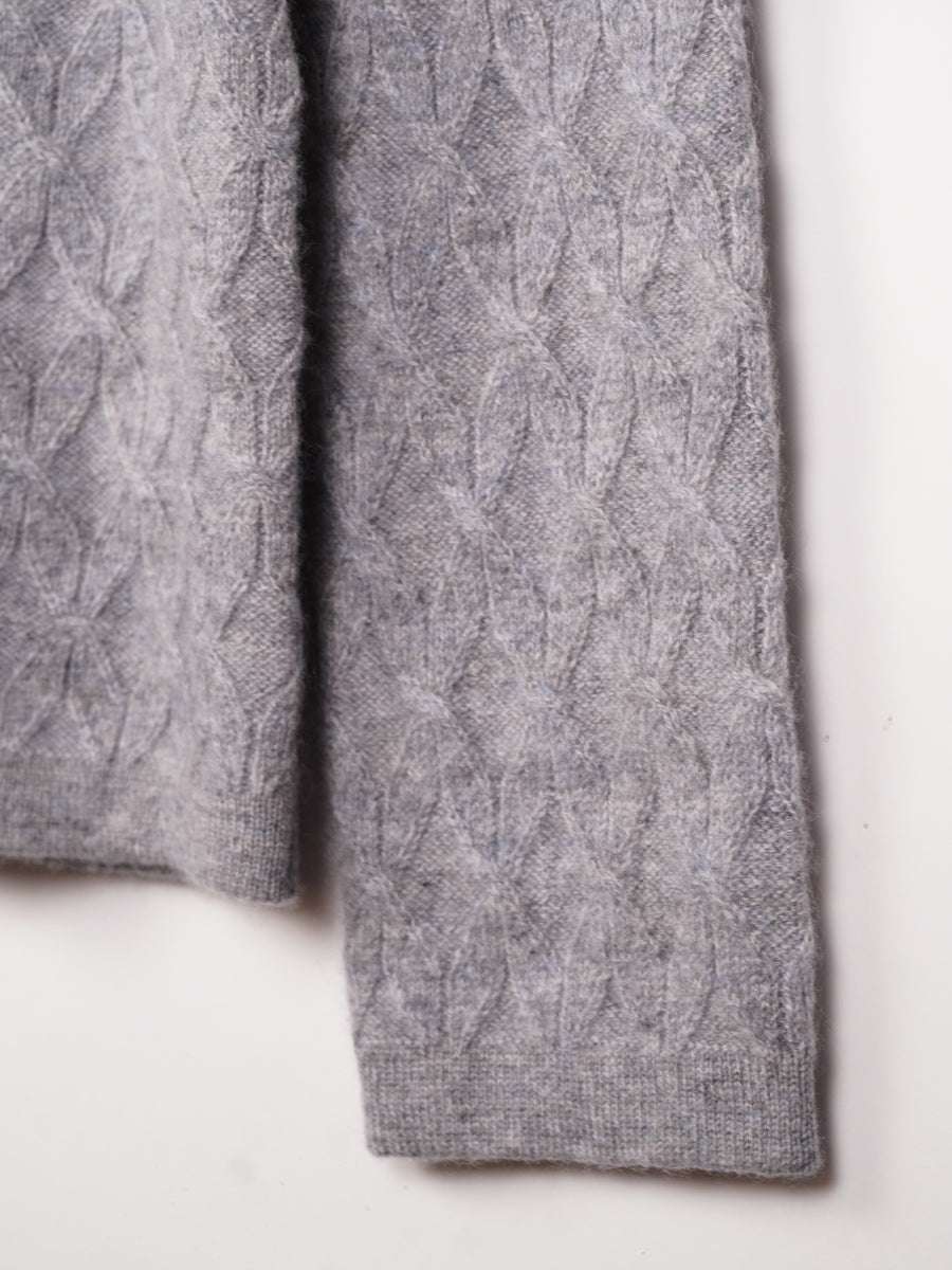まるで綿あめを纏うようなカーディガンは、カシミヤの風合いを思う存分味わえる1枚です。無地ライクだけど繊細な小花モチーフが着るたびに気持ちがワクワクします。