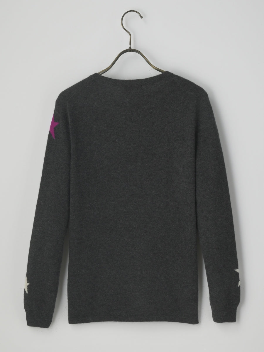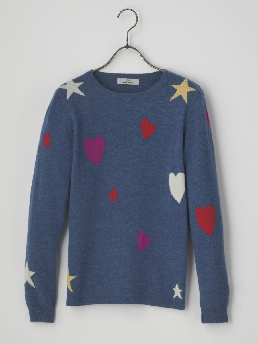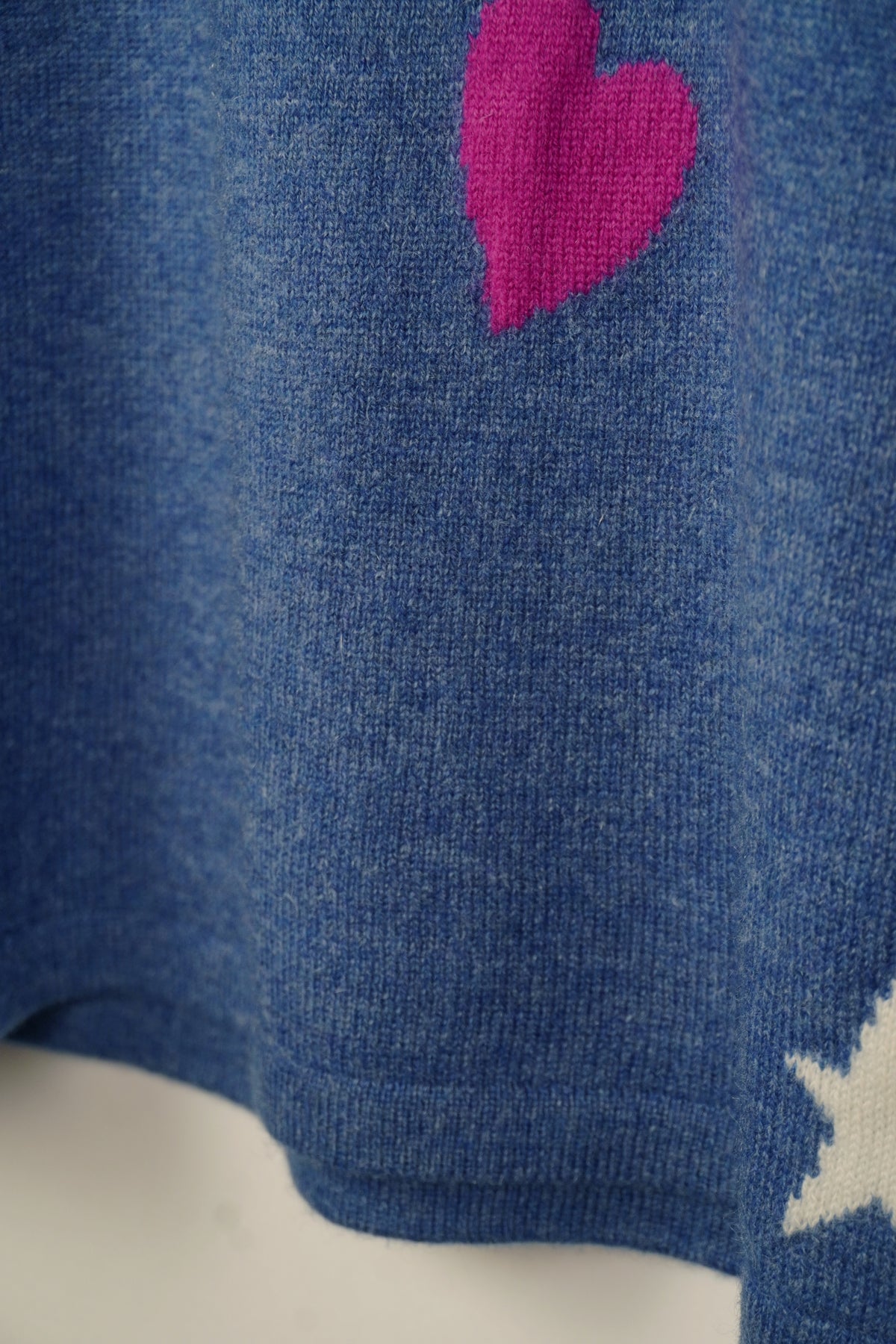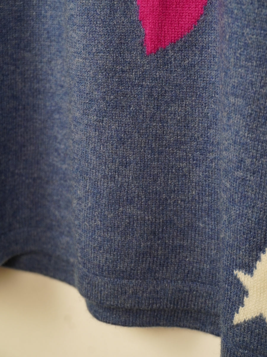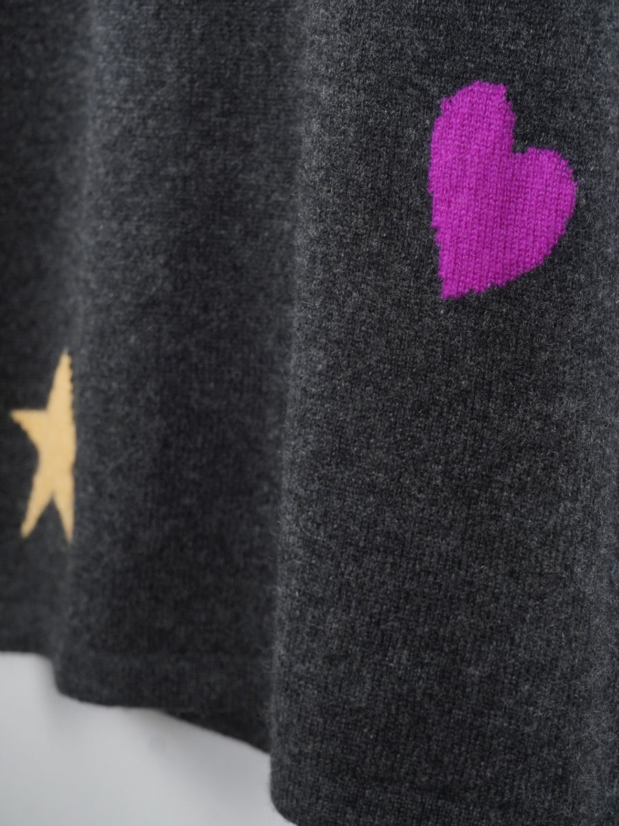 コミカルなハートモチーフと星柄が前身ごろと袖を彩る。一つのモチーフでは、物足りなくなったあなたの為にお届けします。ハート柄と星柄のカラー配色も必見です。