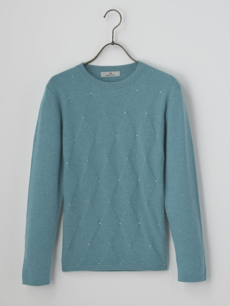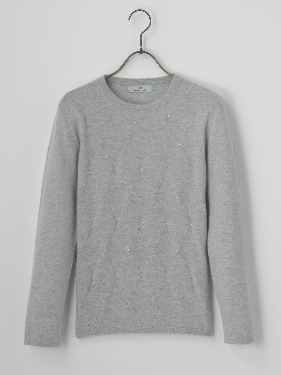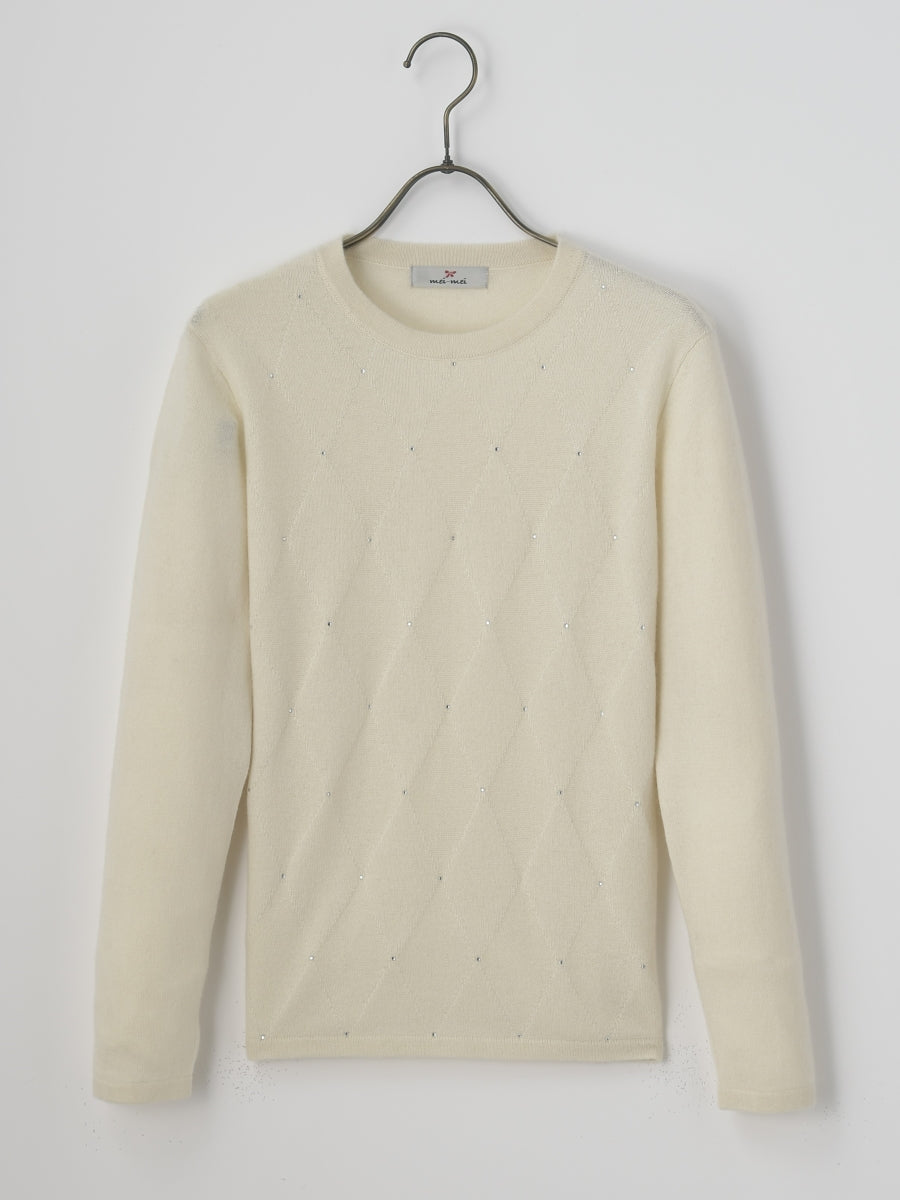 人気ラインストーンシリーズは、編地模様をダイヤ柄にし、ポイントにラインストーンを施しました。