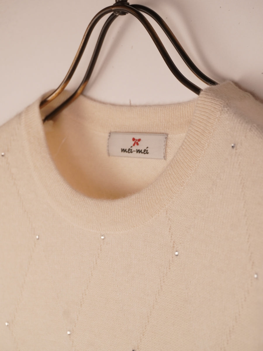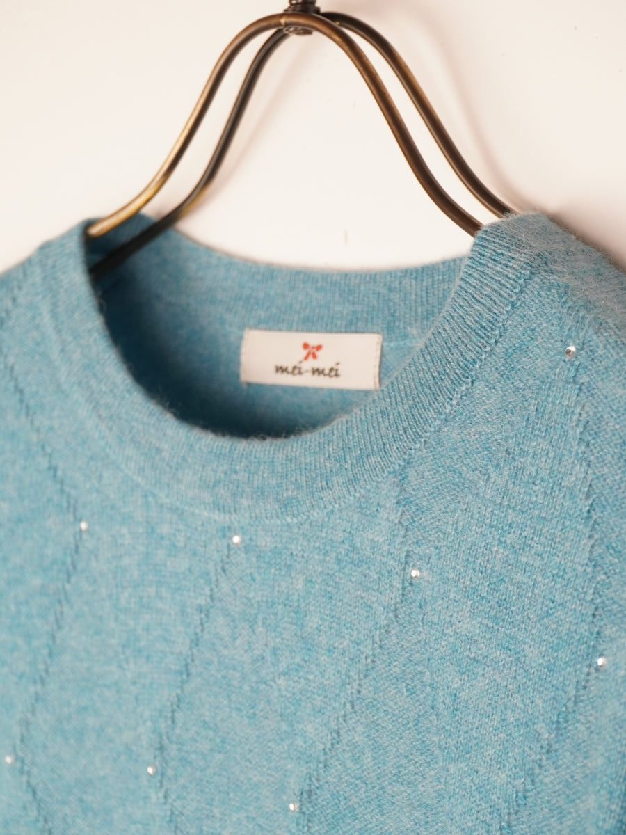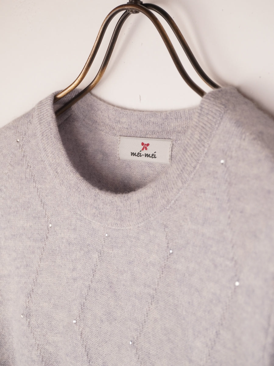 人気ラインストーンシリーズは、編地模様をダイヤ柄にし、ポイントにラインストーンを施しました。