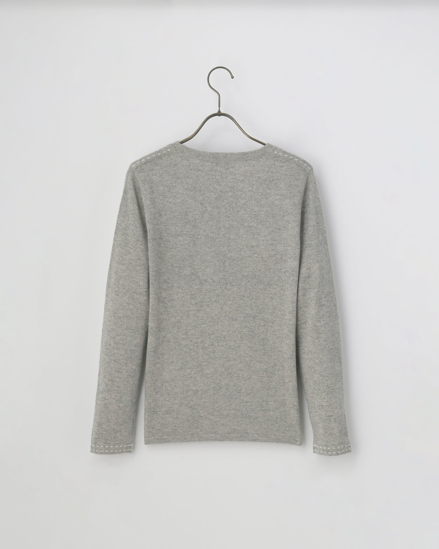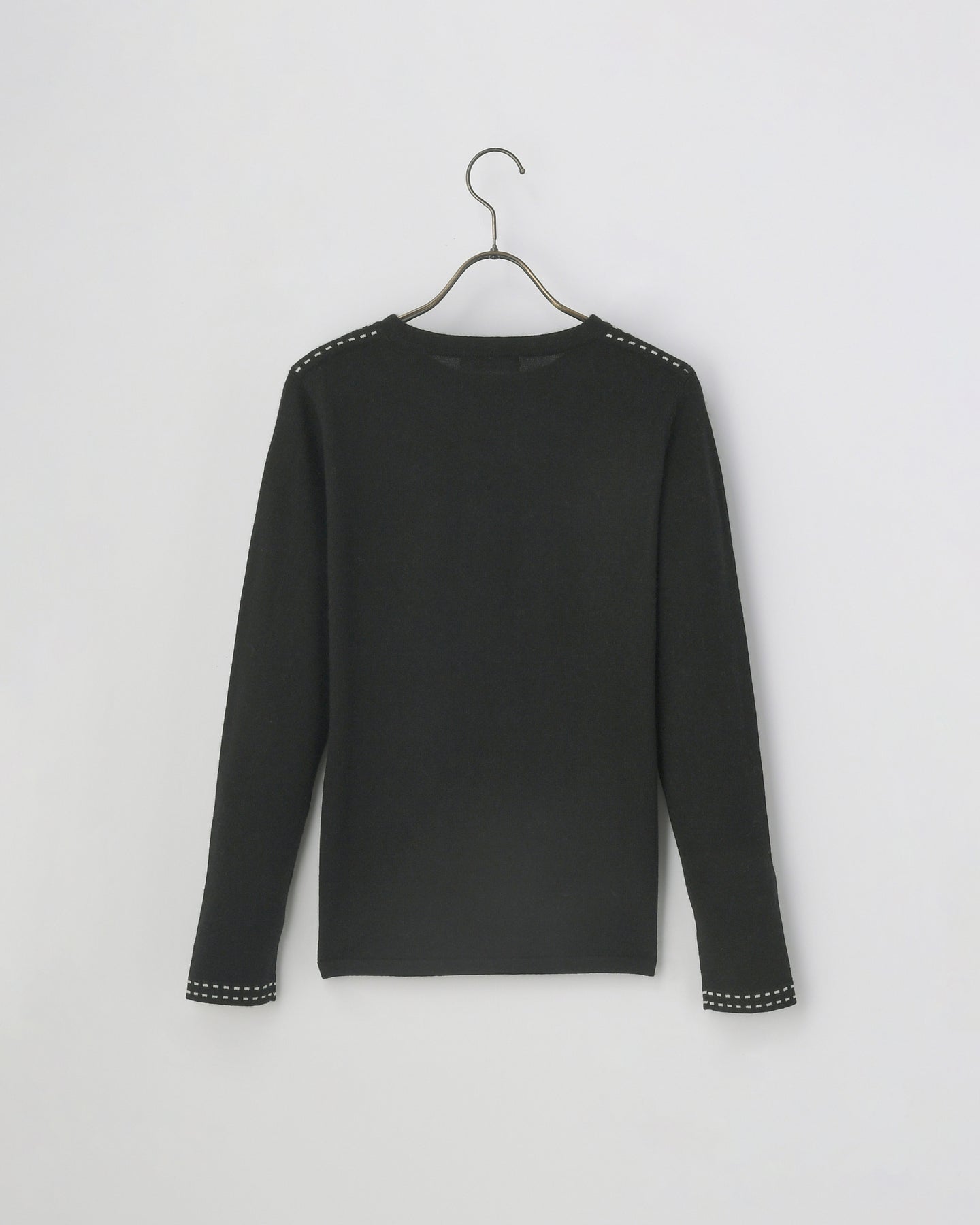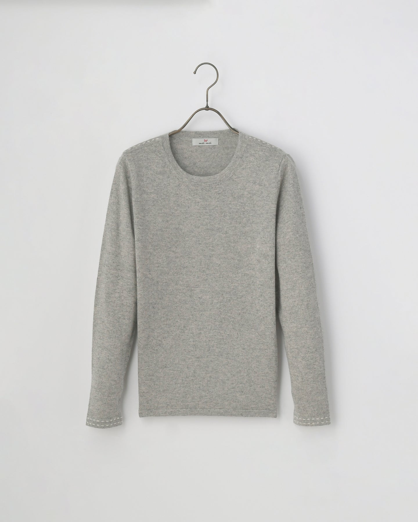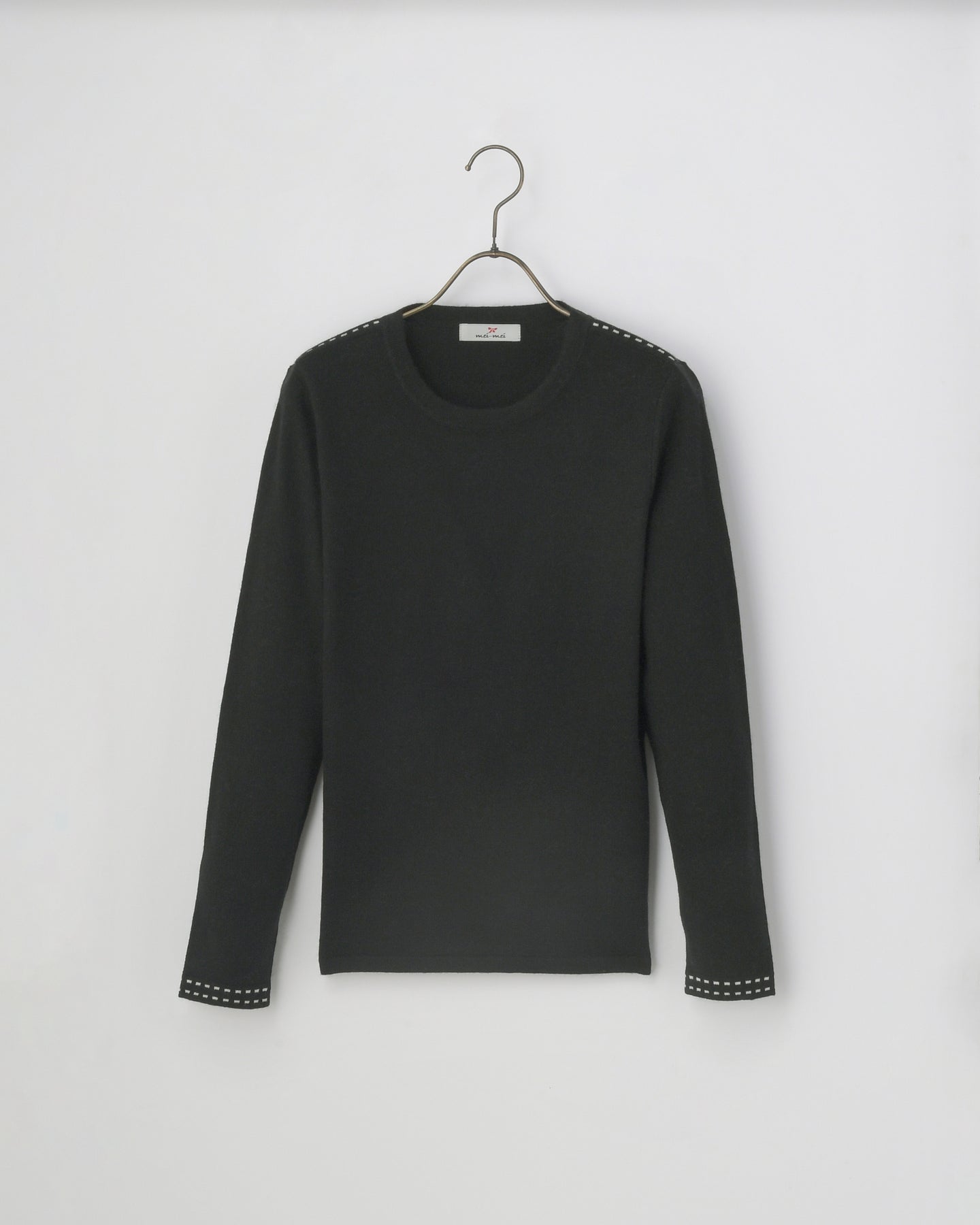 肩と袖口にドットラインをさりげなく施したプルオーバーセーター。