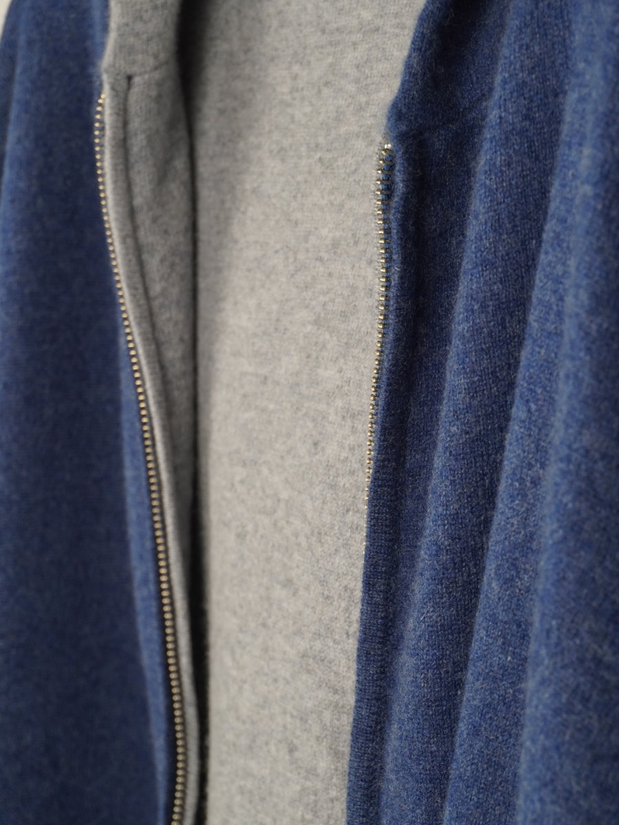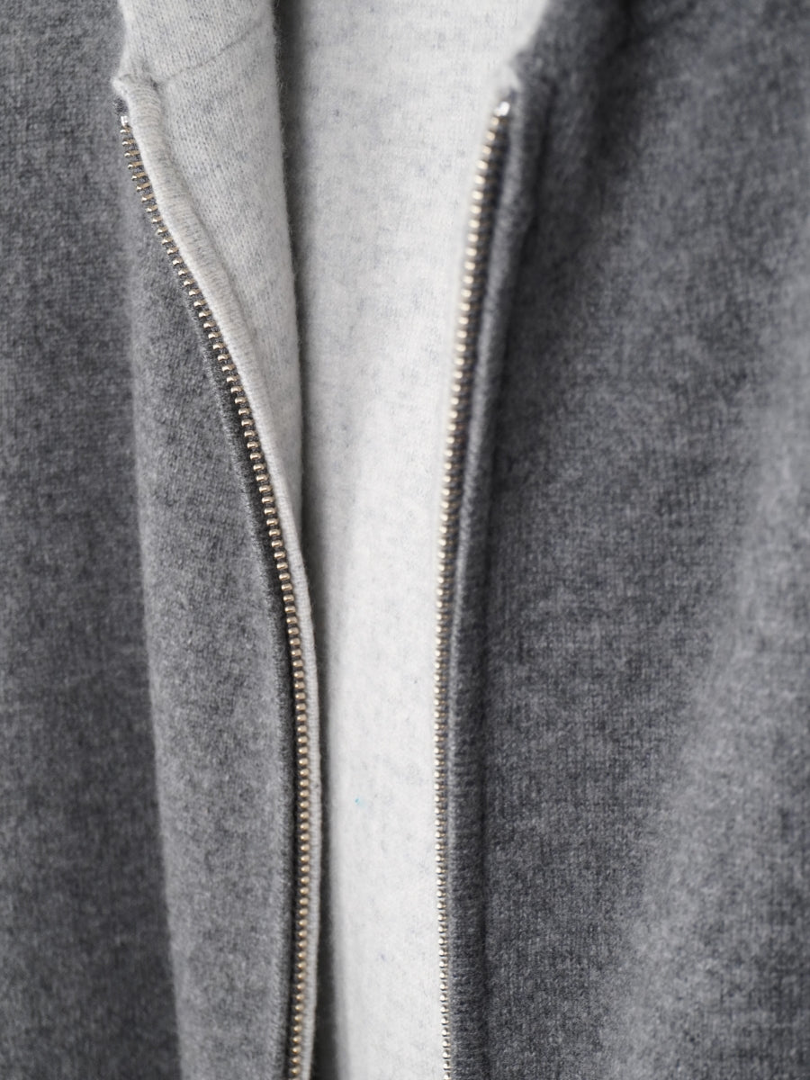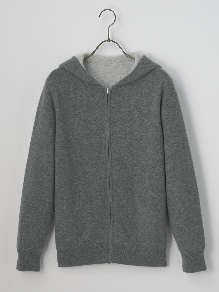 最高級カシミヤ素材を大胆なリバーシブルフードパーカーに仕立てました。その日の気分にあなたならどちらのカラーで着こなしてみますか?