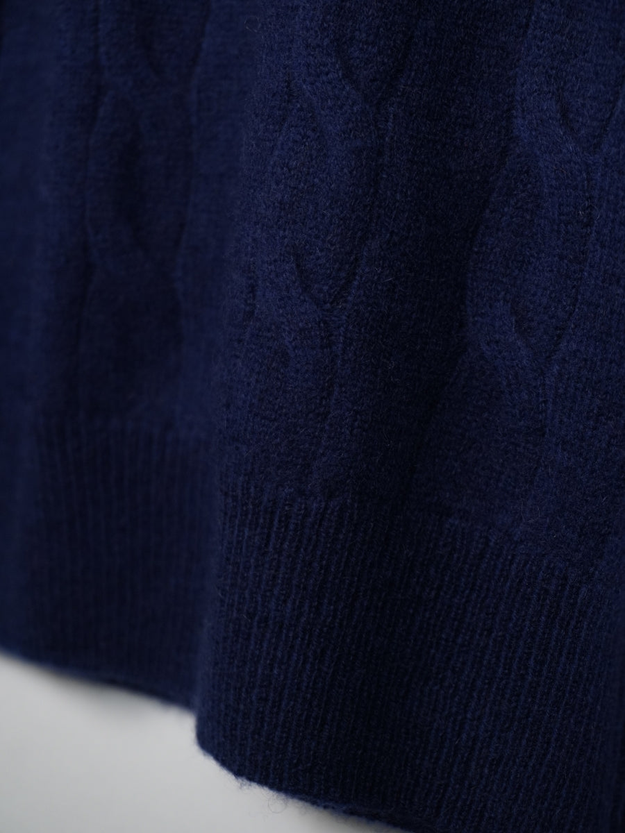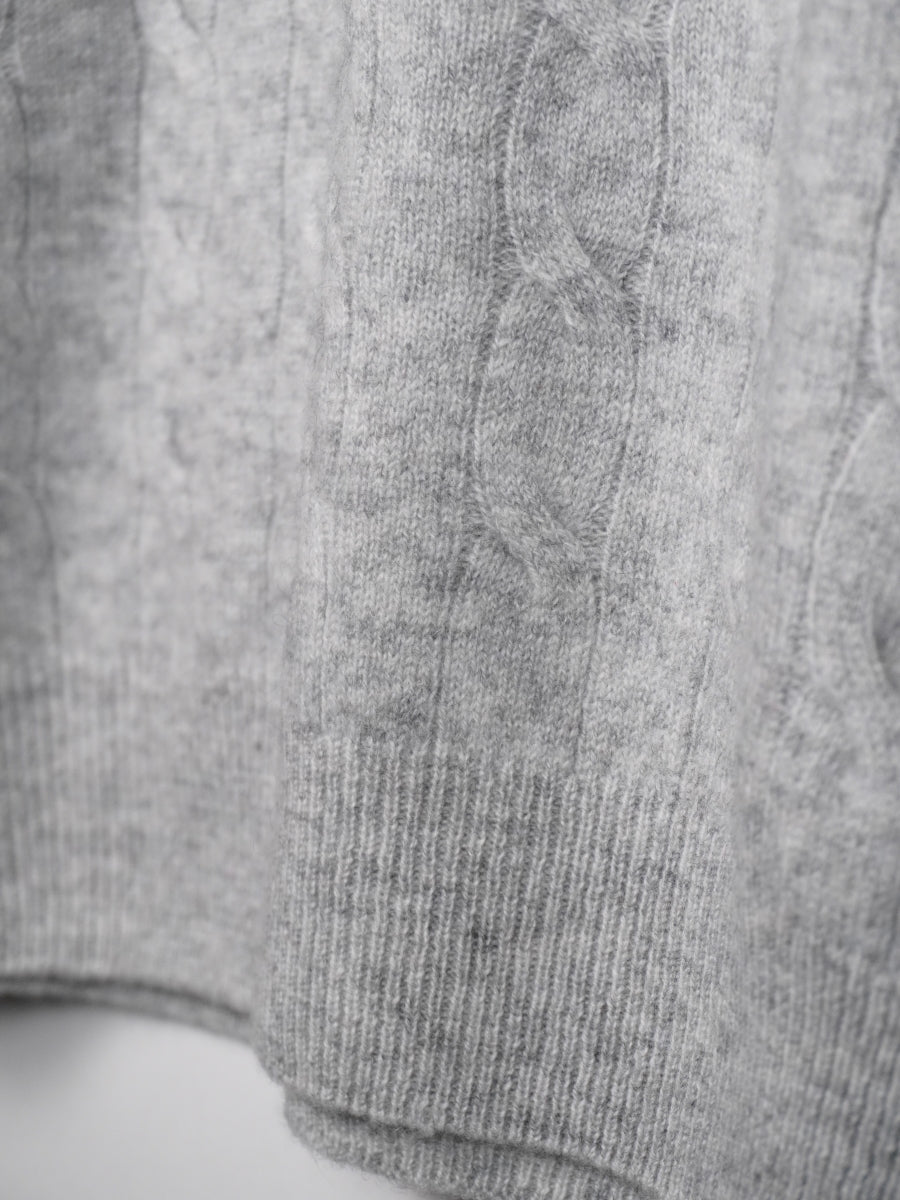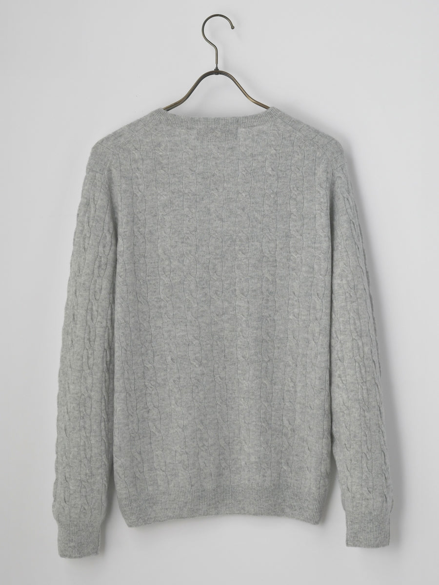 最高級カシミヤを使ったシンプルなケーブル編みセーター。オーソドックスにシャツアイテムと合わせたり、スポーティーなカットソー素材に合わせてもOK。オンからオフまで幅広く活躍するアイテムです。